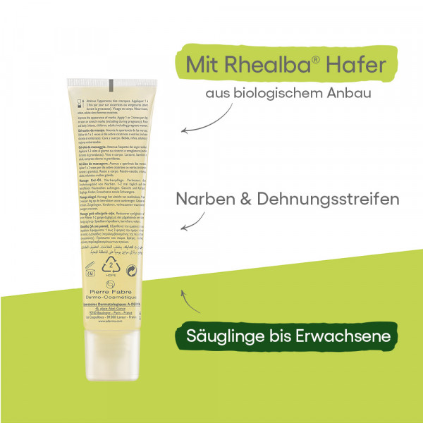 Die verträgliche pflanzenbasierte Narbenpflege mit einzigartiger Gel-Öl Wechseltextur für eine wirksame Massage.