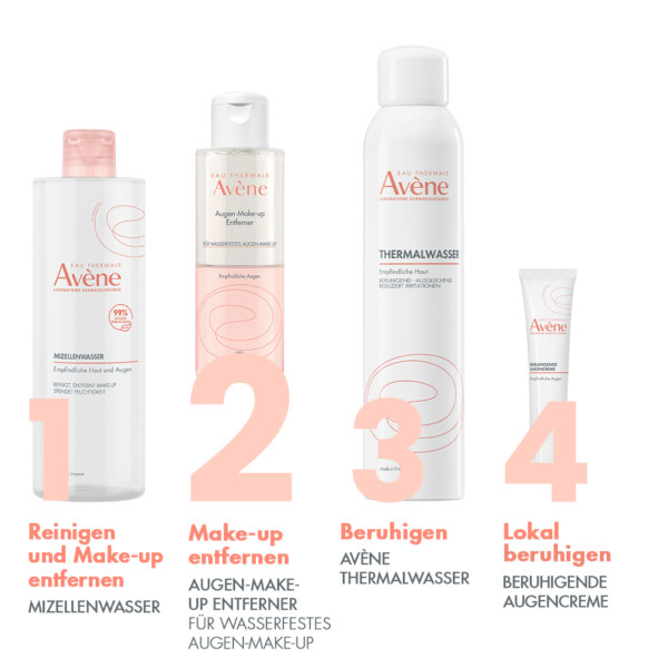Das gründliche Entfernen des Augen-Make-ups am Abend ist unerlässlich, um die strahlenden, schönen Augen zu bewahren. Die Haut um die Augenpartie ist besonders empfindlich und Make-up-Reste können die Haut um die Augen und das Bindegewebe reizen. Deshalb ist es wichtig zum Abschminken ein Reinigungsprodukt zu verwenden, das speziell für die empfindliche Augenpartie (und KontaktlinsenträgerInnen) entwickelt wurde. Es sollte sanft zur Haut sein, aber auch effektiv das Augen-Make-up entfernen.