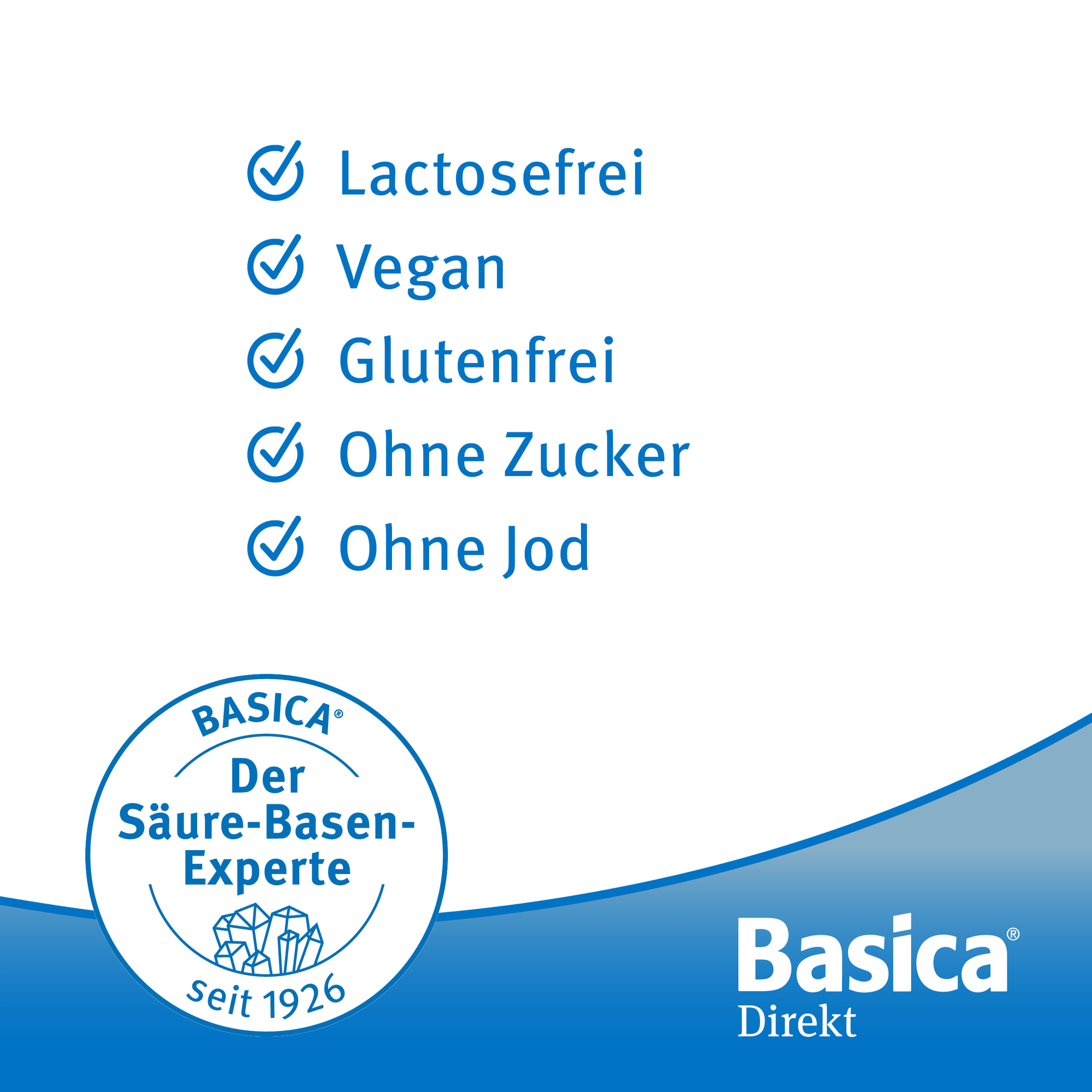 Basica® mit basischen Mineralstoffen und wertvollen Spurenelementen unterstützt das gesundheitliche Wohlbefinden und Zink den normalen Säure-Basen-Stoffwechsel.
