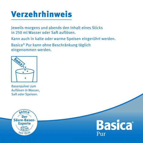 Basica® Pur ist vielseitig verwendbar und kann in Wasser oder Saft aufgelöst sowie in kalte und warme Speisen eingerührt werden. Basica® Pur ist hitzebeständig und zum Kochen und Backen geeignet.