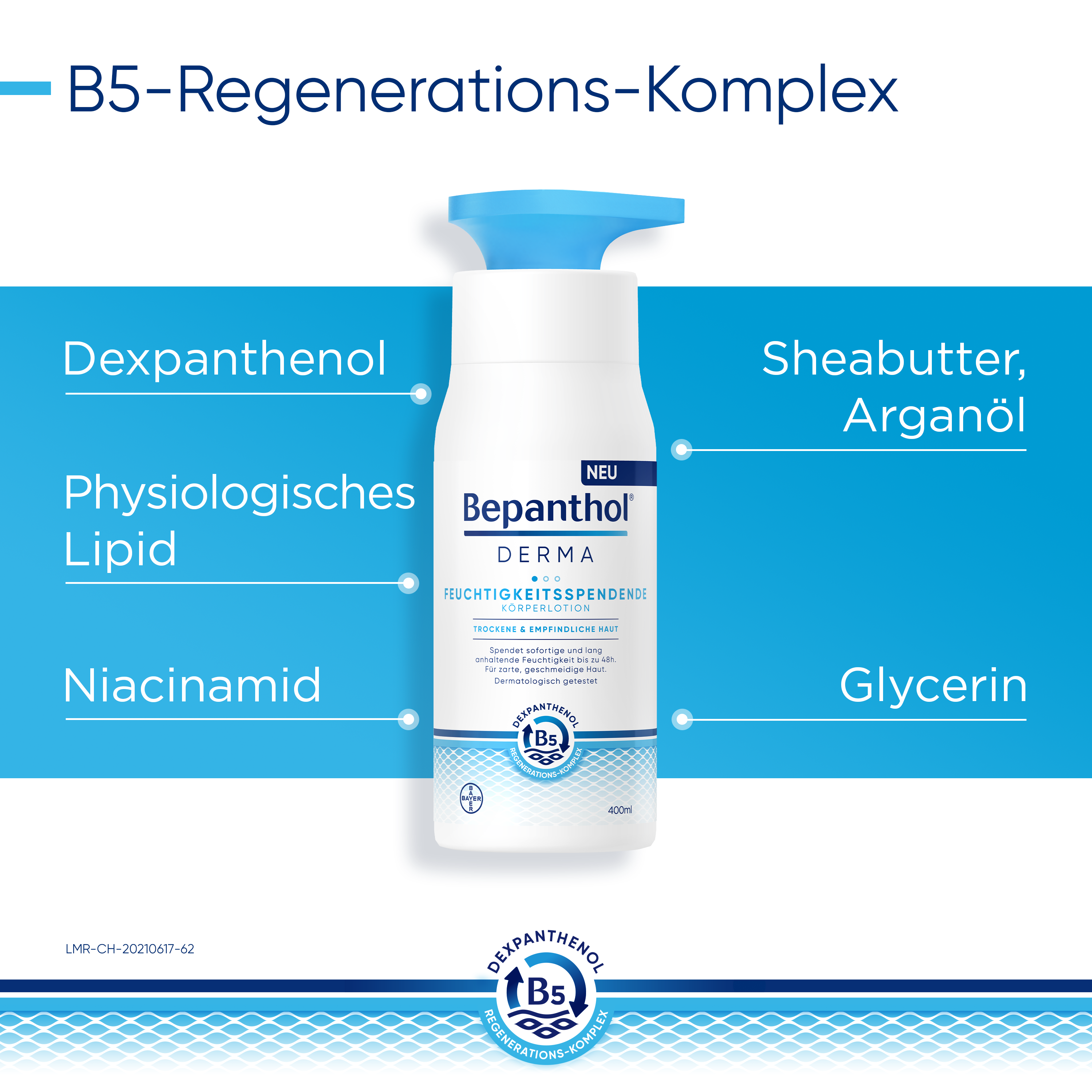 - Die Feuchtigkeitsspendende Körperlotion ist eine dermatologisch getestete medizinische Hautpflege aus dem Hause Bepanthen® – wissenschaftlich fundiert und von Fachleuten empfohlen.
