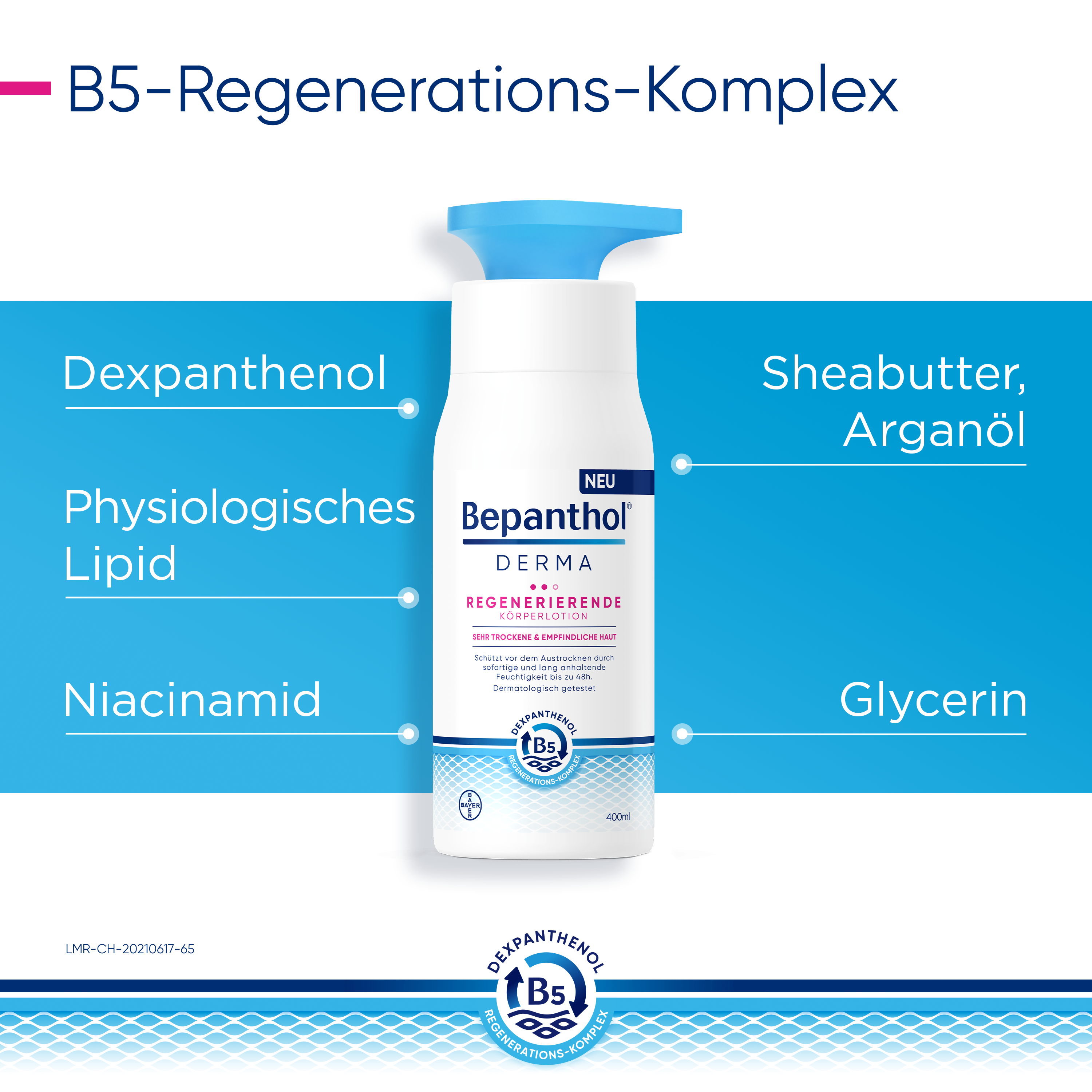 • Die Regenerierende Körperlotion ist eine dermatologisch getestete medizinische Hautpflege aus dem Hause Bepanthen® – wissenschaftlich fundiert und von Fachleuten empfohlen.
