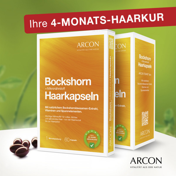 Nehmen Sie täglich, am besten mit der ersten Mahlzeit des Tages, 2 Kapseln mit etwas Flüssigkeit ein. Es empfiehlt sich, die Bockshorn + Mikronährstoff Haarkapseln über einen Zeitraum von mindestens 4 Monaten anzuwenden.