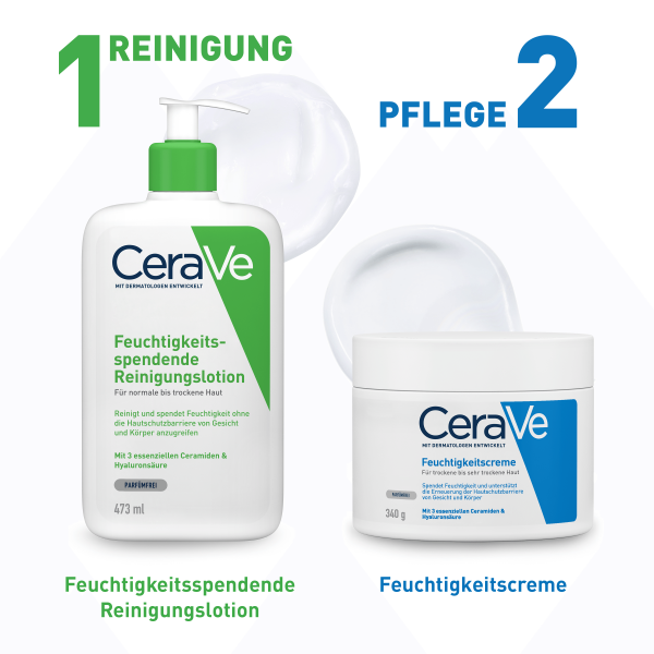 Reichhaltige Feuchtigkeitspflege für die ganze Familie Die CeraVe Feuchtigkeitscreme für Gesicht und Körper hydratisiert die Haut, beugt Austrocknung vor und stärkt die Hautschutzbarriere. CeraVe Feuchtigkeitscreme für trockene bis sehr trockene Haut Die Hautpflege zeichnet sich durch ihre patentierte MVE-Wirkstoff-Freisetzung aus, die die aktiven Wirkstoffe über den Tag verteilt freisetzt. Dank Hyaluron und drei essenziellen Ceramiden wird die Haut kontinuierlich mit Feuchtigkeit versorgt und die natürliche Hautschutzbarriere gestärkt – für ein angenehm weiches Hautgefühl. Die CeraVe Feuchtigkeitscreme enthält keine Dufstoffe und eignet sich auch bei Neurodermitis und für Allergiker.
