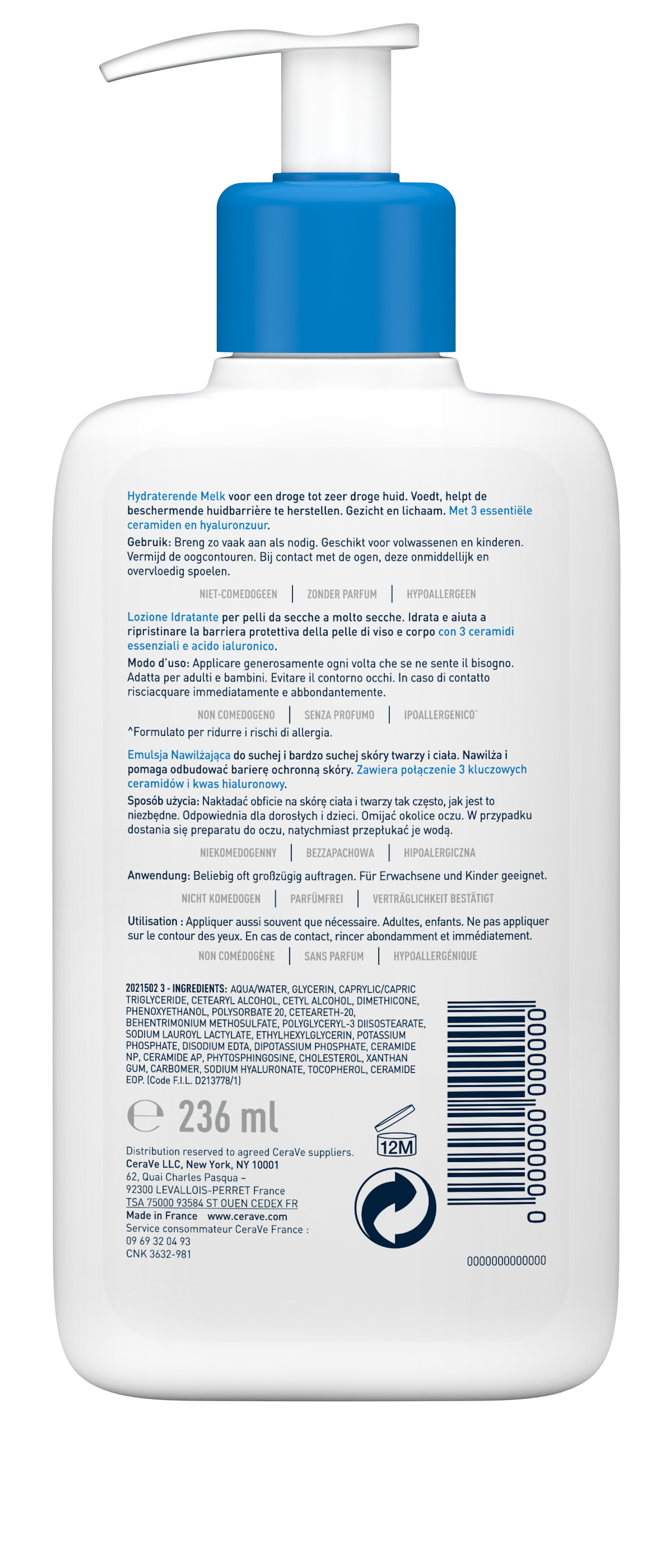 Die Feuchtigkeitslotion von CeraVe kann beliebig oft und großzügig auf die gereinigte Haut von Gesicht und Körper aufgetragen werden. Diese dafür regelmäßig insbesondere auf trockene und sehr trockene Hautstellen geben und sanft in kreisenden Bewegungen einmassieren. Die Augenkonturen aussparen. Dank ihrer nicht-komedogenen und parfumfreien Formel kann die feuchtigkeitsspendende Pflegelotion für alle Hauttypen, einschließlich für zu Neurodermitis und Allergien neigende Haut verwendet werden. Um die Pflegeroutine zu intensivieren eignet sich darüber hinaus ein CeraVe Reinigungsprodukt für trockene Haut.