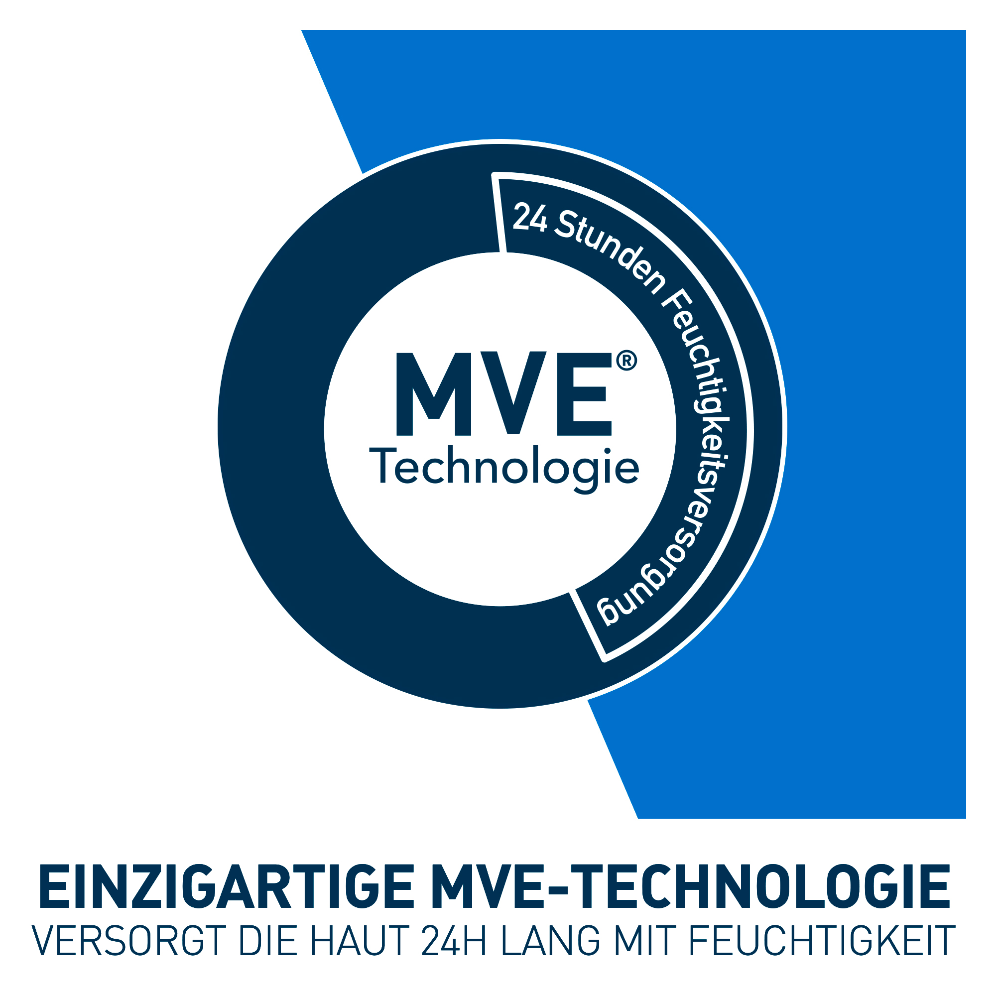- Dank der patentierten MVE-Technologie versorgt sie die Haut 24 Stunden lang mit Feuchtigkeit und durchfeuchtet sie intensiv – ab der 1. Anwendung.