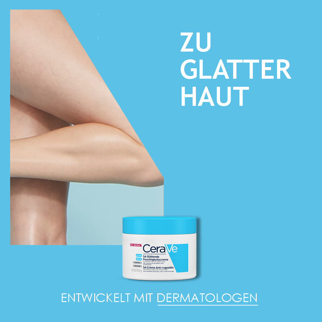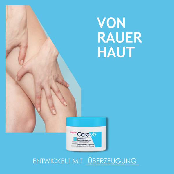 - Da die CeraVe SA Urea Glättende Feuchtigkeitscreme keine Duftstoffe enthält, eignet sie sich auch bei empfindlicher Haut und bei Reibeisenhaut.