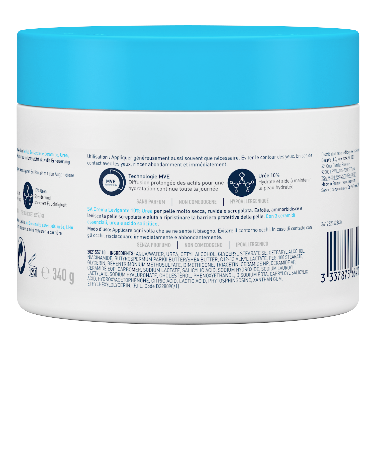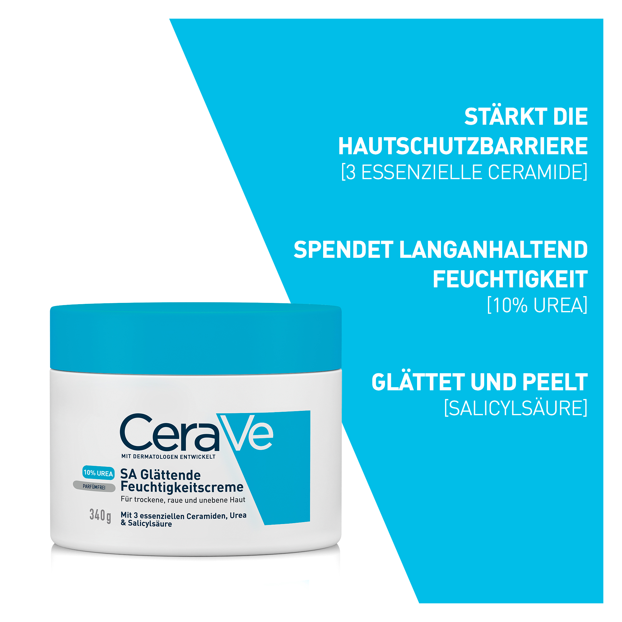 - SA Urea Glättende Feuchtigkeitscreme von CeraVe mit 10 % Urea und Hyaluronsäure versorgt die Haut intensiv und langanhaltend mit Feuchtigkeit.