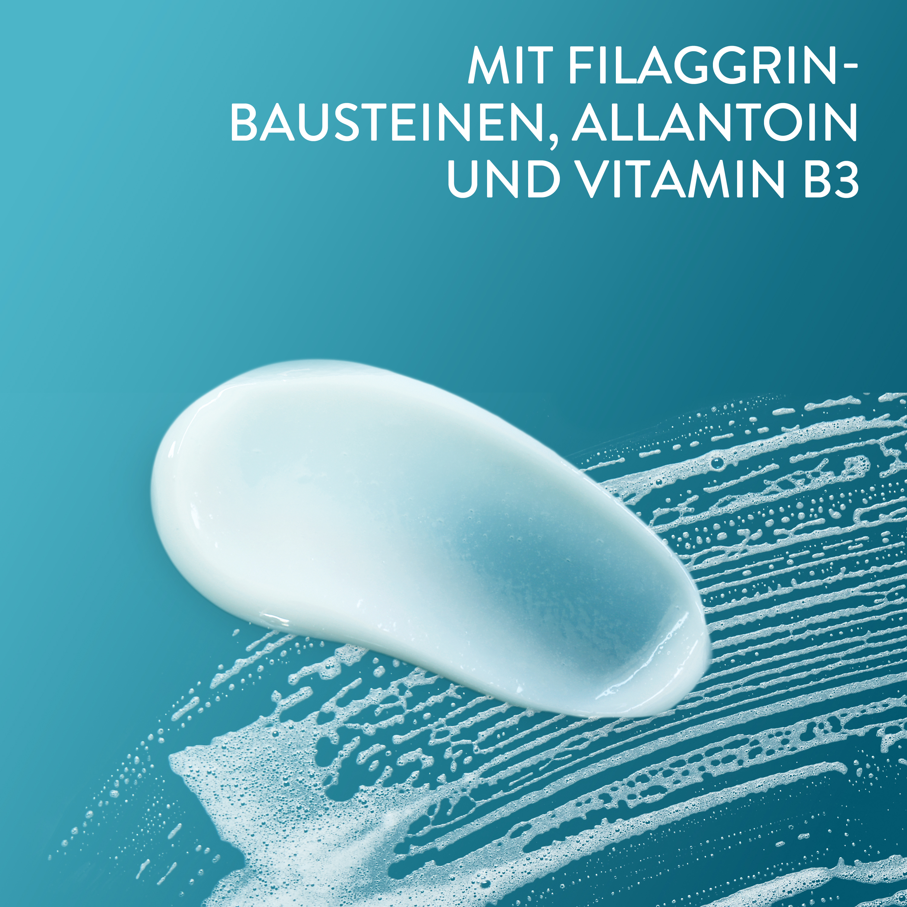 - Spendet intensive Feuchtigkeit mit Filaggrin-Bausteinen, Allantoin und Vitamin B3 und hilft, die Feuchtigkeitsbarriere der Haut wiederherzustellen