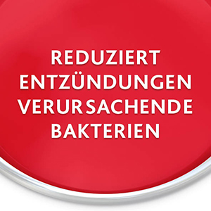 Wirkstoff: Chlorhexidindigluconat. Anwendungsgebiet: zur Vorbeugung und vorübergehenden unterstützenden Behandlung bei bakteriell bedingten Zahnfleischentzündungen (Gingivitis) und der Mundschleimhaut, zur Unterstützung der Heilungsphase nach parodontalchirurgischen Eingriffen (Eingriffe am Zahnhalteapparat), bei eingeschränkter Mundhygienefähigkeit, z.B. als Folge orthodontischer (kieferorthopädischer) Behandlungen, als Zusatz bei Fluoridgabe zur Vorbeugung von Karies bei Risikopatienten sowie Patienten, die an Mundtrockenheit leiden (Xerostomie-Patienten) oder Patienten mit Zahnprothesen.