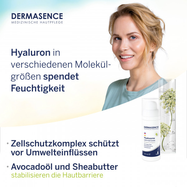 Pflegetipp: Zur intensiveren Feuchtigkeitspflege empfehlen wir vorab das DERMASENCE Hyalusome Konzentrat.
