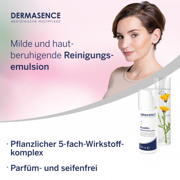 Schonende, seifenfreie Reinigungsemulsion für die empfindliche zu Rosacea neigende, reaktive Haut. Sie ermöglicht eine besonders sanfte Reinigung ohne hautstrapazierendes Reiben. Während der Reinigung werden die empfindlichen Gefäße durch den pflanzlichen 5-fach-Wirkkomplex gestärkt. Panthenol und Allantoin beruhigen die Haut. Die leichte, erfrischende Emulsion hinterlässt ein angenehmes Hautgefühl. Erhält die natürliche Barrierefunktion der Haut und kann Irritationen und entzündlichen Prozessen vorbeugen. Ideal zur schonenden Entfernung von (Augen-)Make-up.