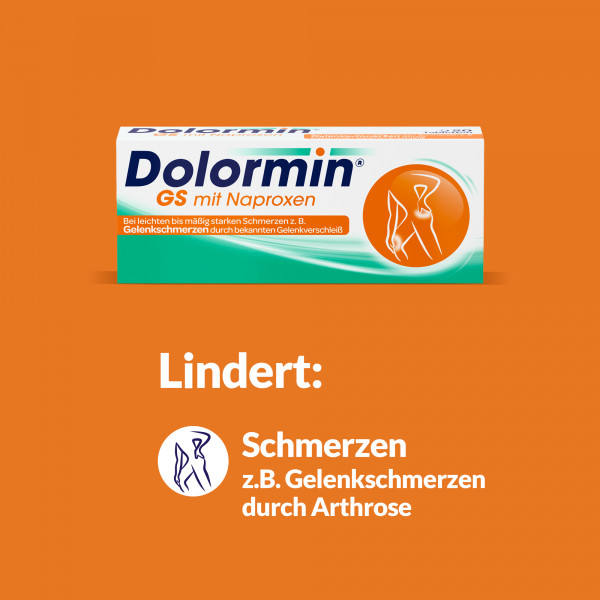 Hier hilft Dolormin® GS mit dem Wirkstoff Naproxen. Es lindert leichte bis starke Schmerzen z.B. bei Gelenkverschleiß für bis zu 12 Stunden mit nur einer Einnahme.