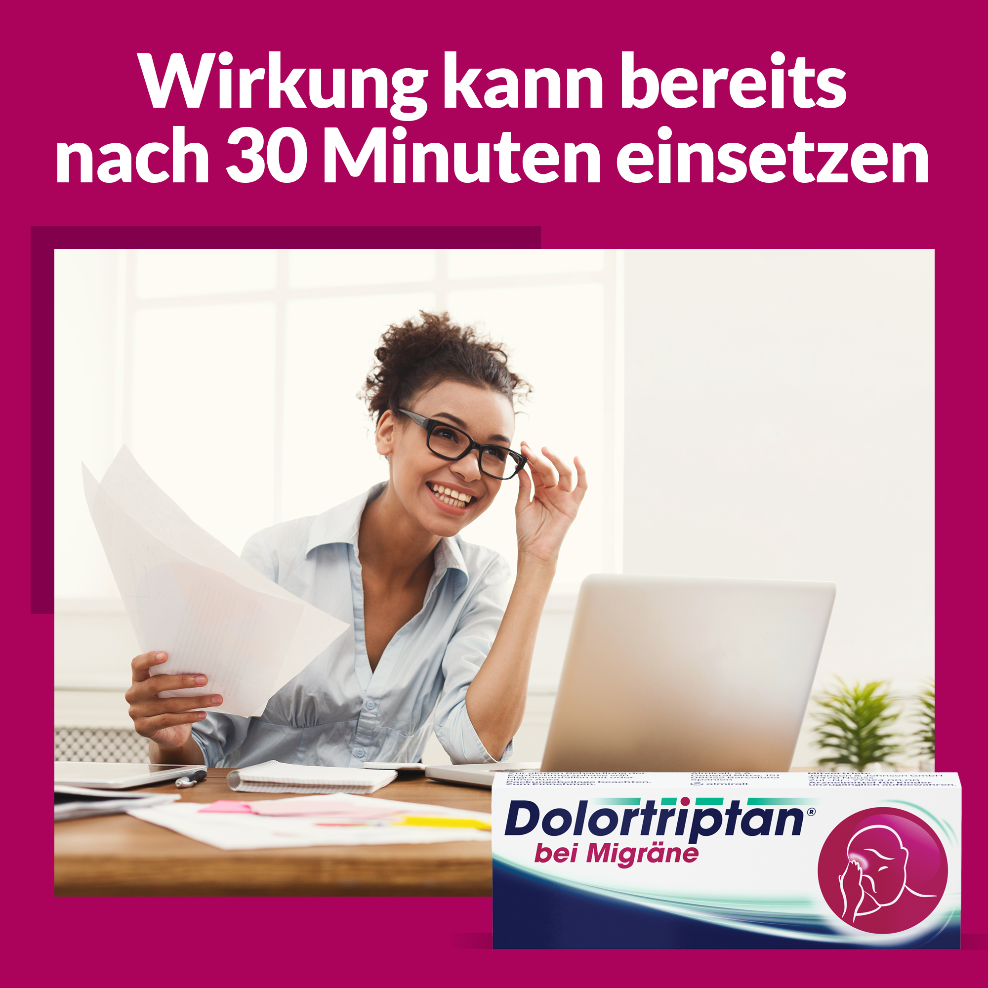 Pro Migräneanfall sollte eine Tablette Dolortriptan®, am besten mit einem Glas Wasser, eingenommen werden. Tritt innerhalb der nächsten 24 Stunden ein neuer Migräneanfall auf, kann eine zweite Tablette eingenommen werden, sofern die erste Tablette eine Linderung verschafft hat. Verbessern sich die Beschwerden nach Einnahme der ersten Tablette nicht, sollte keine weitere Tablette eingenommen werden.