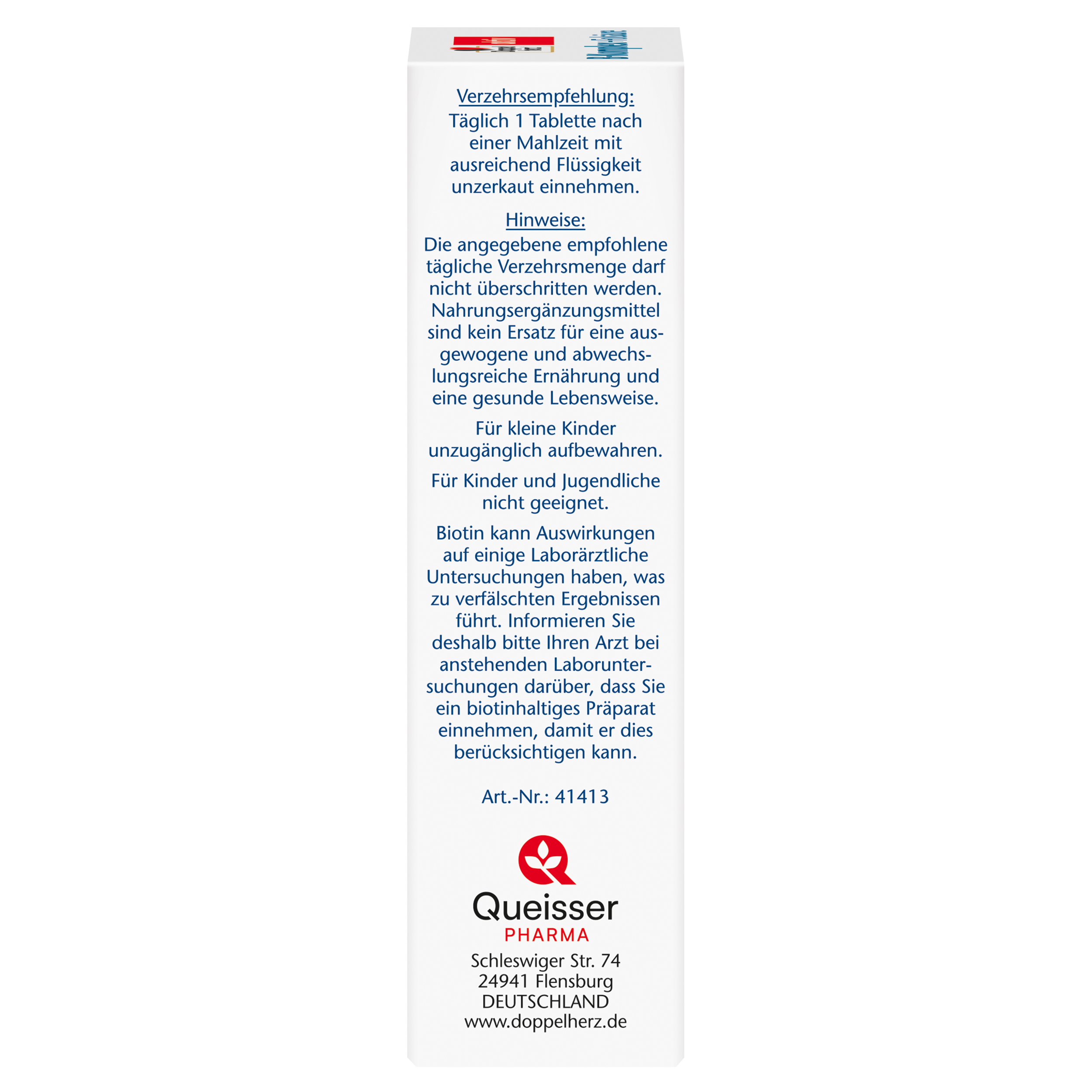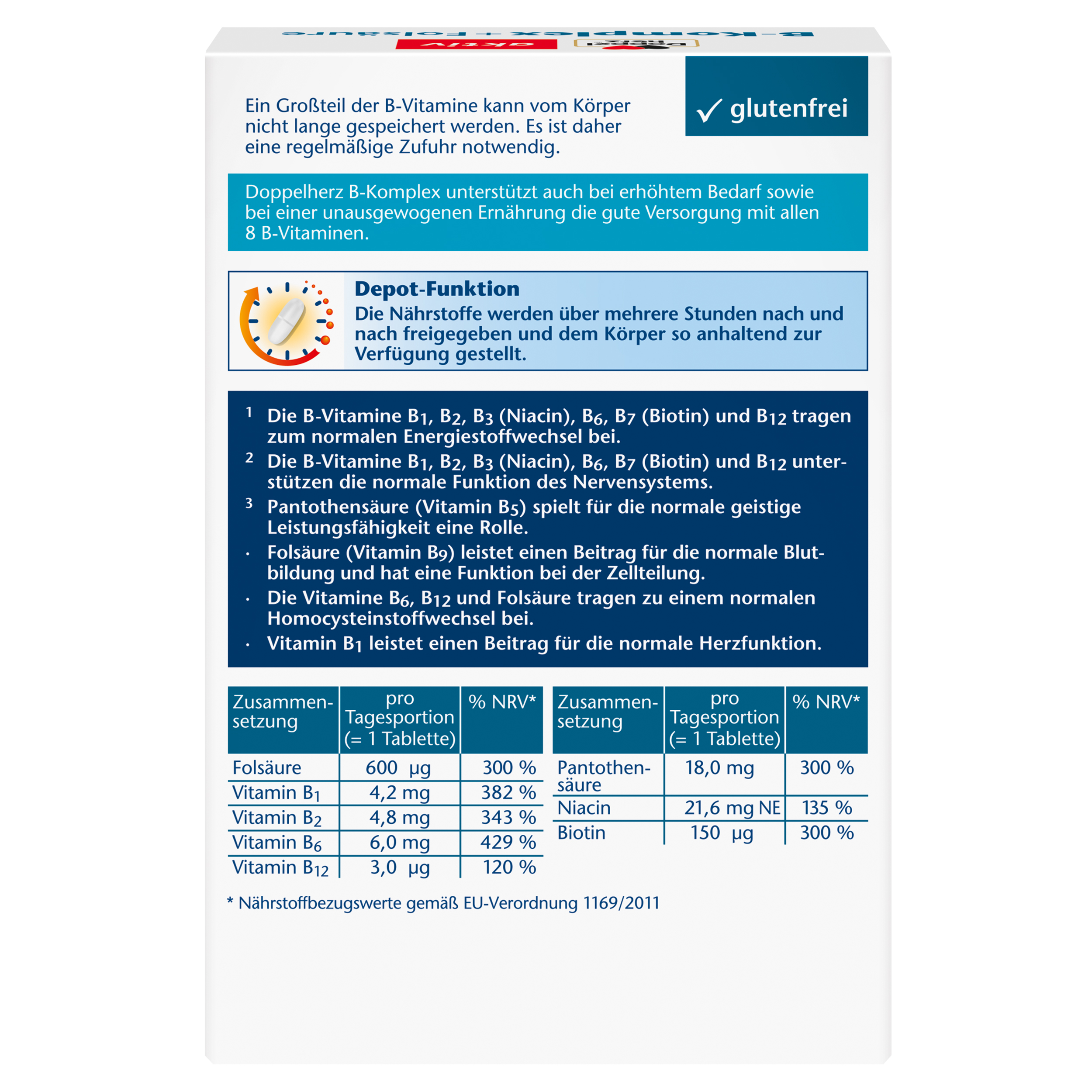 DoppelherzNahrungsergänzungsmittel sind kein Ersatz für eine ausgewogene und abwechslungsreiche Ernährung und eine gesunde Lebensweise. Die angegebene empfohlene tägliche Verzehrsmenge darf nicht überschritten werden. Außerhalb der Reichweite von kleinen Kindern aufbewahren.