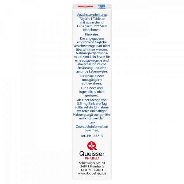 DoppelherzNahrungsergänzungsmittel sind kein Ersatz für eine ausgewogene und abwechslungsreiche Ernährung und eine gesunde Lebensweise. Die angegebene empfohlene tägliche Verzehrsmenge darf nicht überschritten werden. Außerhalb der Reichweite von kleinen Kindern aufbewahren.