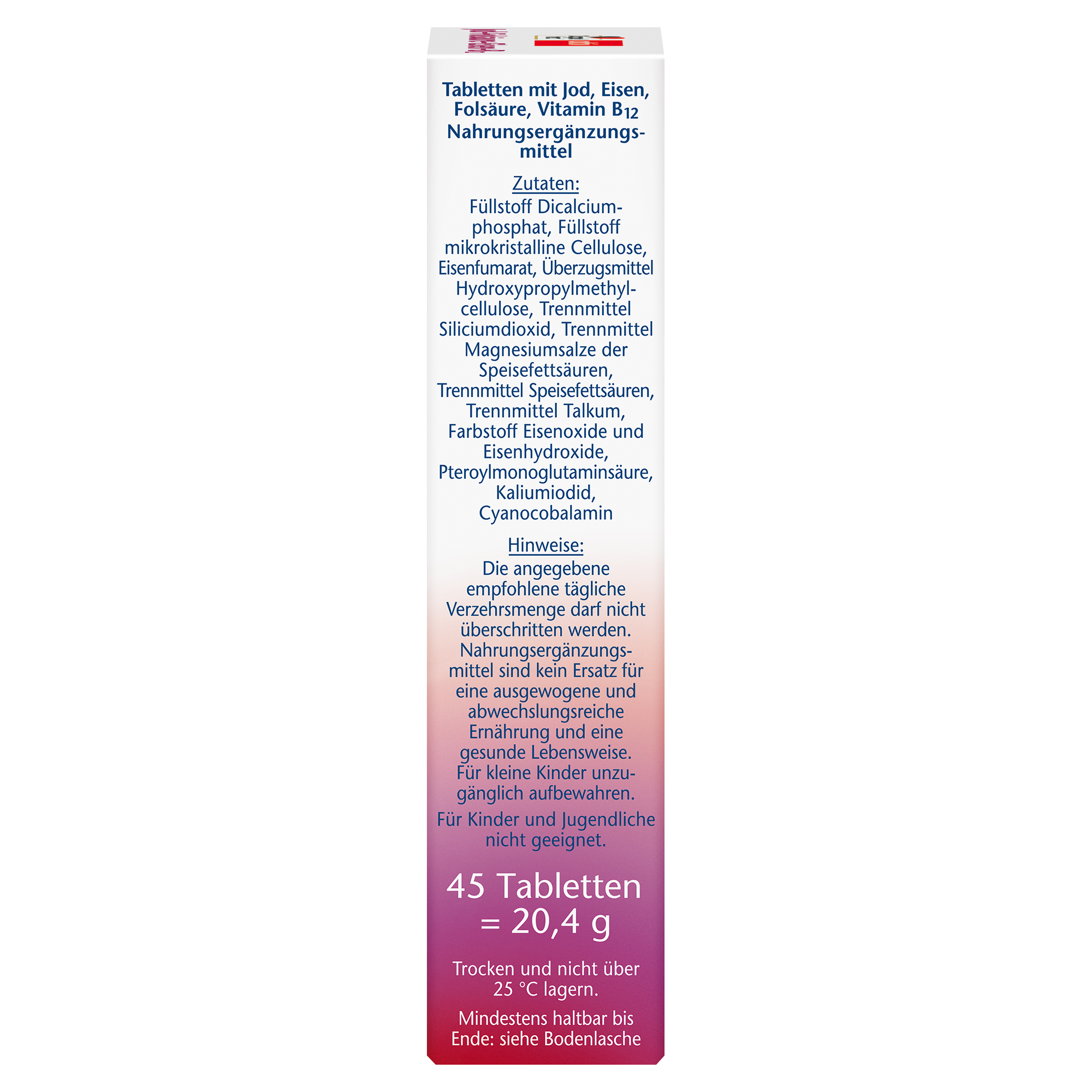 • 100 µg Jod unterstützt die normale Schilddrüsenfunktion