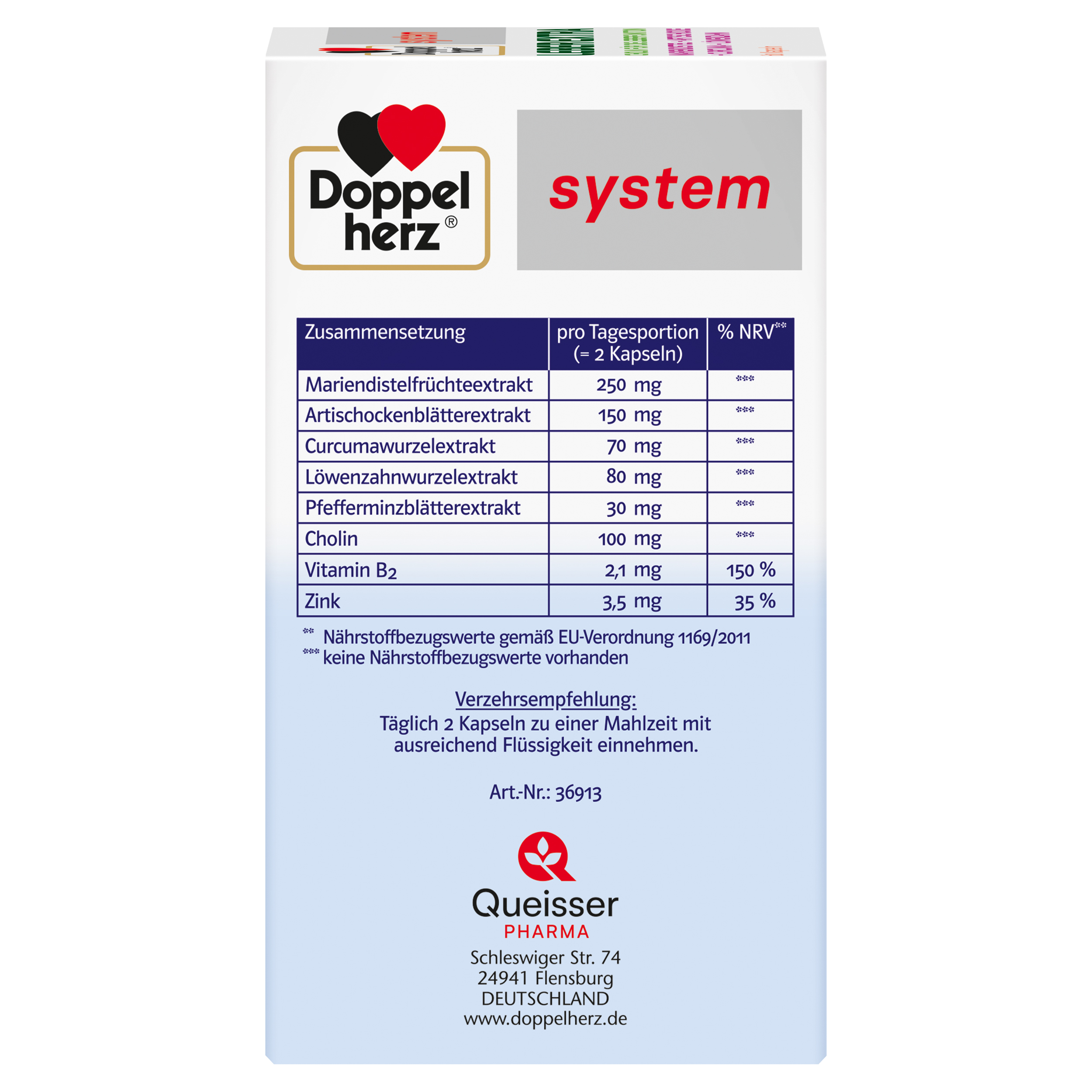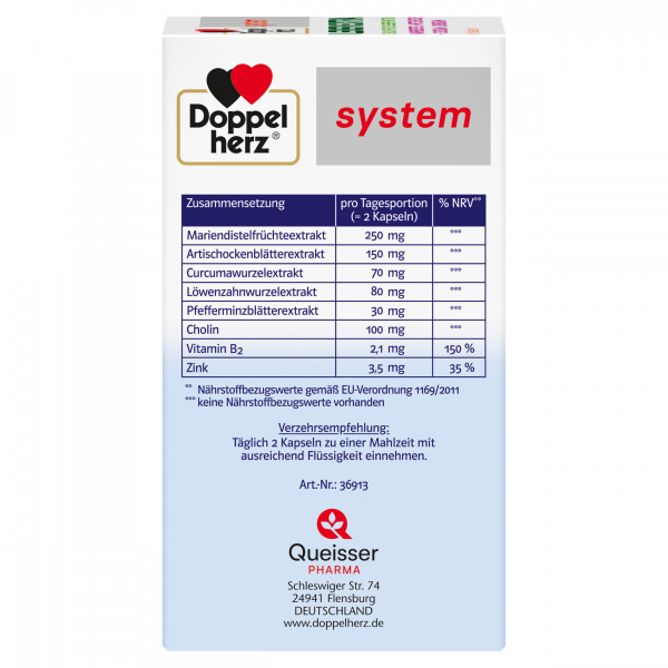 DoppelherzNahrungsergänzungsmittel sind kein Ersatz für eine ausgewogene und abwechslungsreiche Ernährung und eine gesunde Lebensweise. Die angegebene empfohlene tägliche Verzehrsmenge darf nicht überschritten werden. Außerhalb der Reichweite von kleinen Kindern aufbewahren.