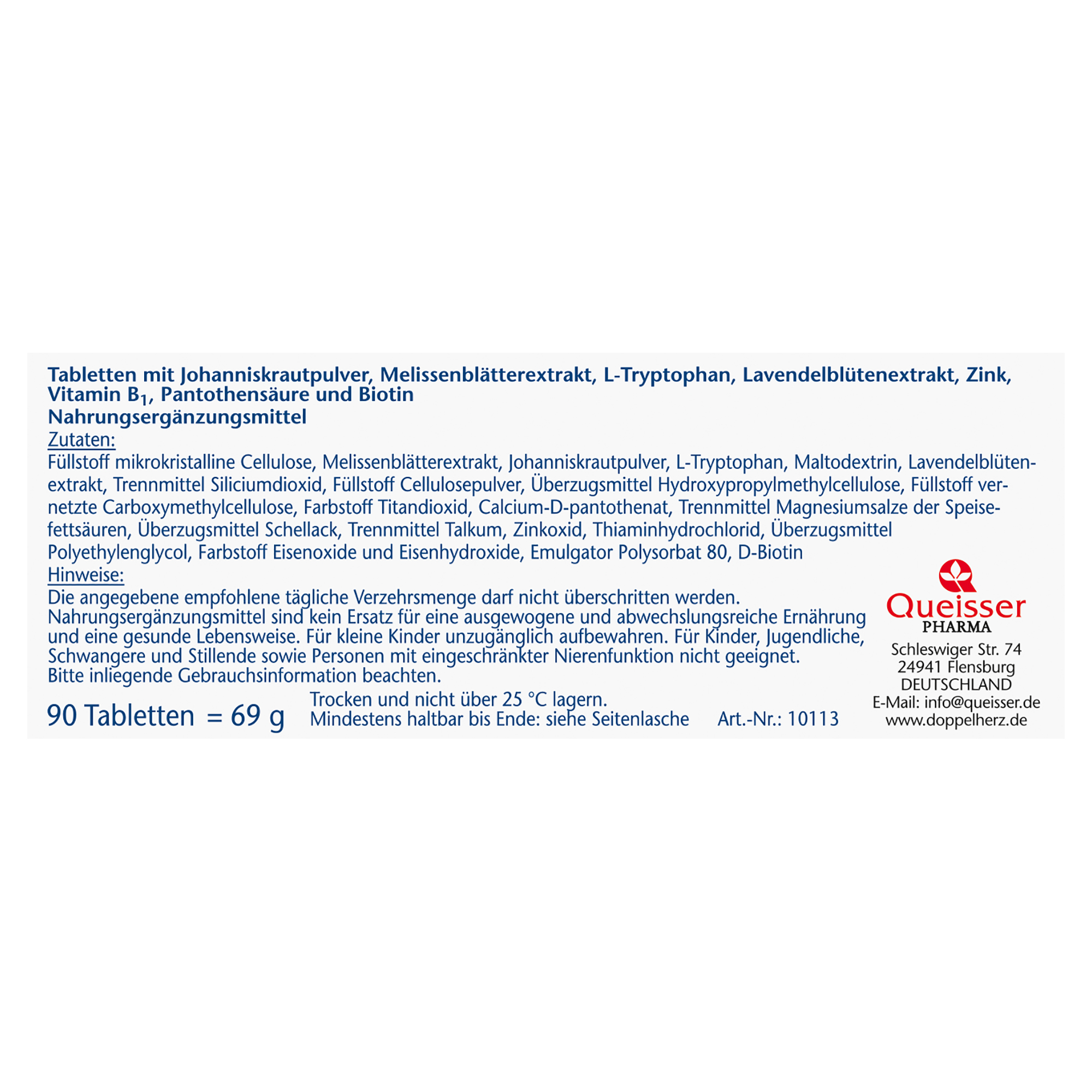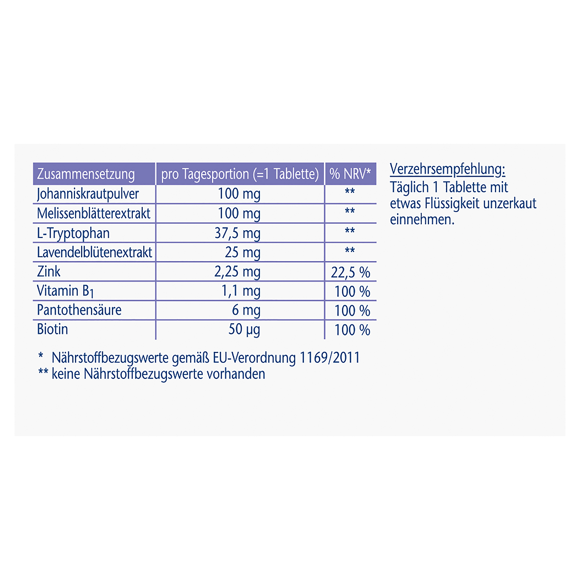 • Plus Johanniskrautpulver, Melissenblätterextrakt, L-Tryptophan und Lavendelblütenextrakt