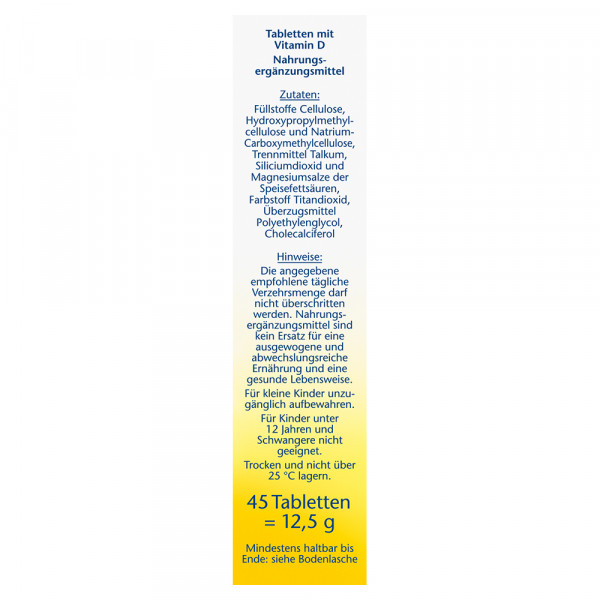 • Vitamin D trägt zum Erhalt normaler Knochen und Zähne und einer normalen Funktion des Immunsystems bei