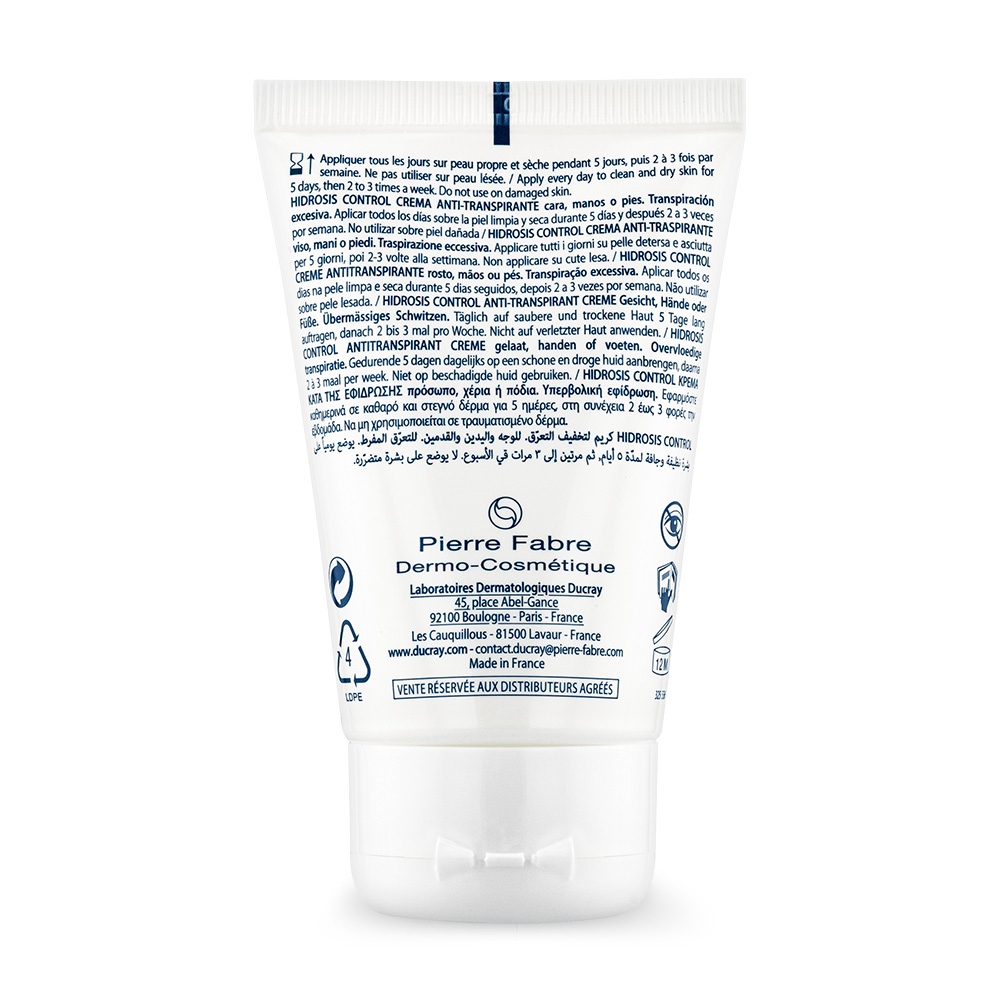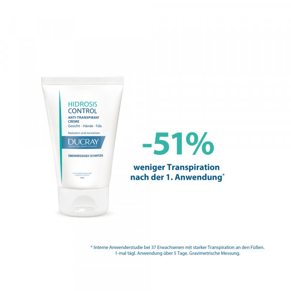 Übermäßiges Schwitzen kann verschiedene Ursachen haben. HIDROSIS CONTROL Anti-Transpirant Creme reguliert schnell und dauerhaft übermäßiges Schwitzen. Für alle Hauttypen geeignet. Entwickelt, um die Gefahr von allergischen Reaktionen zu minimieren.