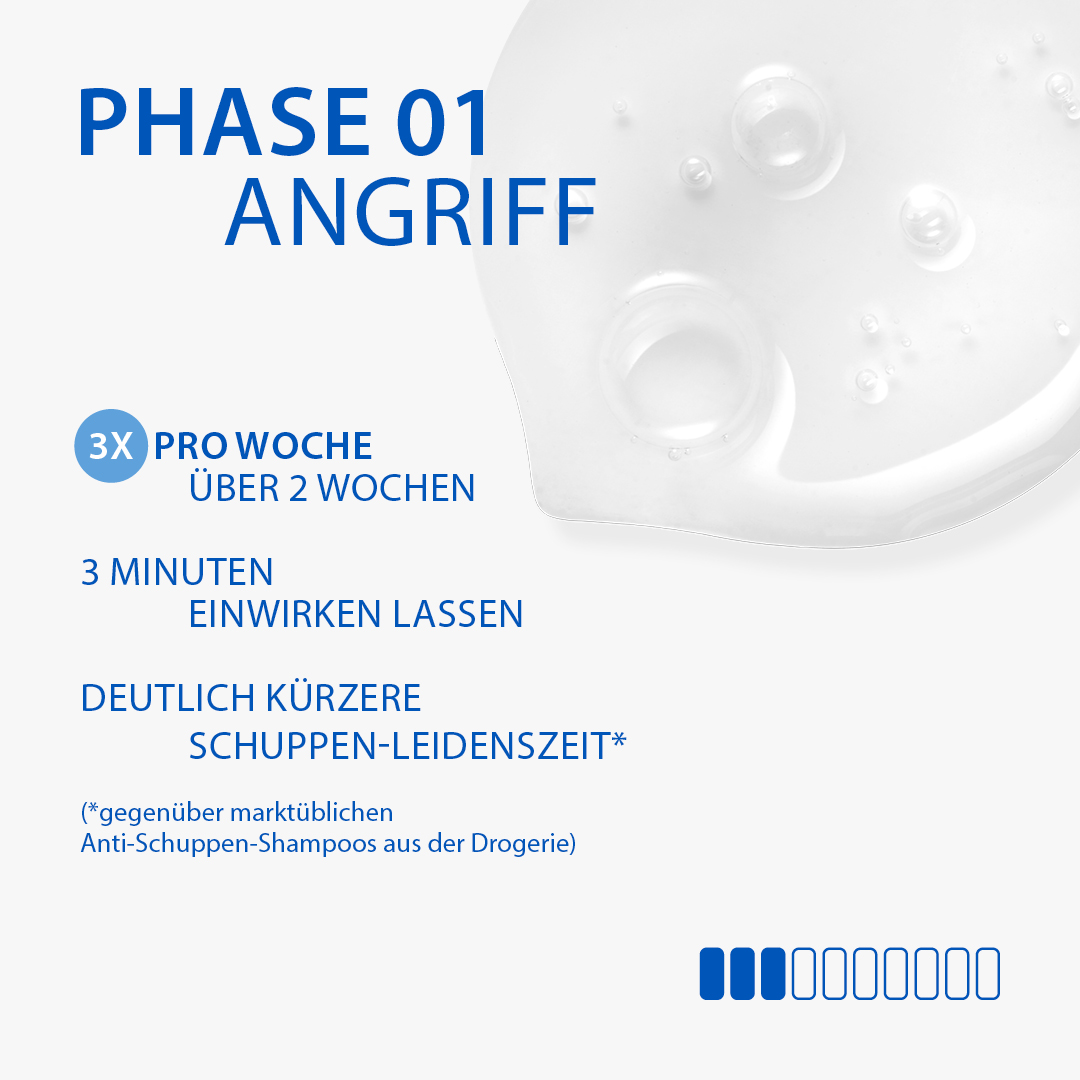 *Interne Anwenderstudie mit 62 Proband:innen mit seborrhoischer Dermatitis an der Kopfhaut. 3 Anwendungen pro Woche im Zeitraum von 2 Wochen, anschließend in der Erhaltungsphase 1 Anwendung pro Woche über 8 Wochen.
