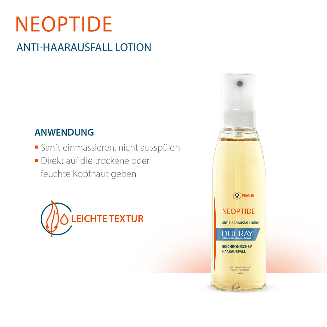 Neoptide Anti-Haarausfall Lotion für Frauen ermöglicht eine tägliche Anwendung ohne das Haar zu fetten. Die Lotion verlangsamt den Haarausfall und stimuliert die Haarwachstumsphase.