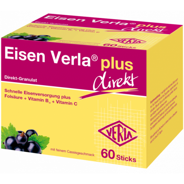 Der Direkt-Stick ist Ihr idealer Begleiter für unterwegs, da er schnell und einfach ohne Wasser verzehrt werden kann. Das Granulat zergeht mit einem fruchtig-frischen Geschmack nach Cassis (schwarze Johannisbeere) direkt auf der Zunge. Durch das innovativ ummantelte Eisen-Granulat hinterlässt der Direkt-Stick keinen störenden Beigeschmack nach Eisen und sorgt für ein angenehmes Mundgefühl. Zusätzlich wird in Eisen Verla® plus ausschließlich zweiwertiges Eisen (Fe2+) für eine gute Aufnahme und Bioverfügbarkeit im Körper verwendet.