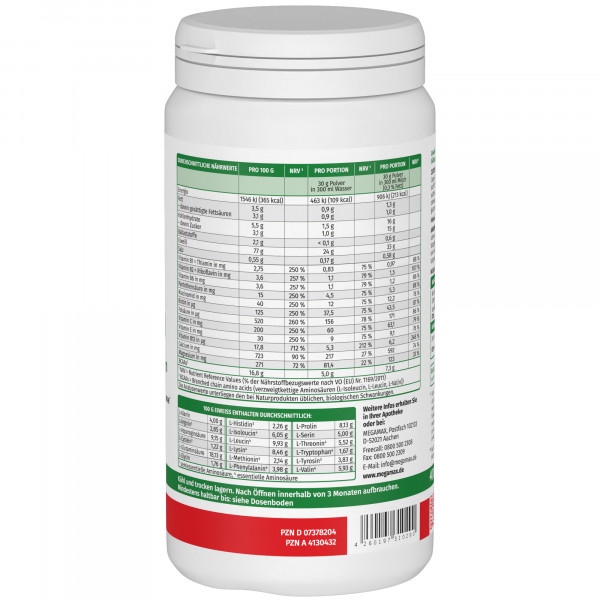Die angegebene empfohlene tägliche Verzehrsmenge darf nicht überschritten werden. Nahrungsergänzungsmittel sind kein Ersatz für eine ausgewogene und abwechslungsreiche Ernährung und gesunde Lebensweise. Für kleine Kinder unzugänglich aufbewahren.