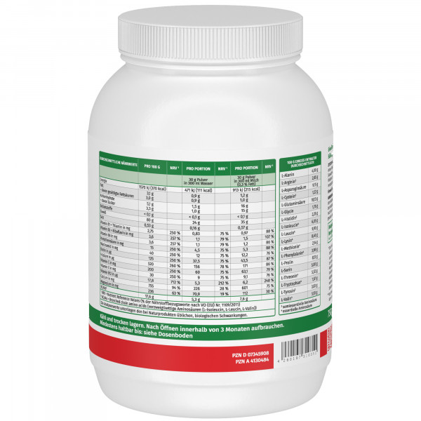 Durchschnittliche Nährwertepro 100 g%NRV*pro Portion (30 g Pulver in 300 ml Wasser)%NRV*pro Portion (30 g Pulver in 300 ml Milch 0,3% Fett)%NRV*