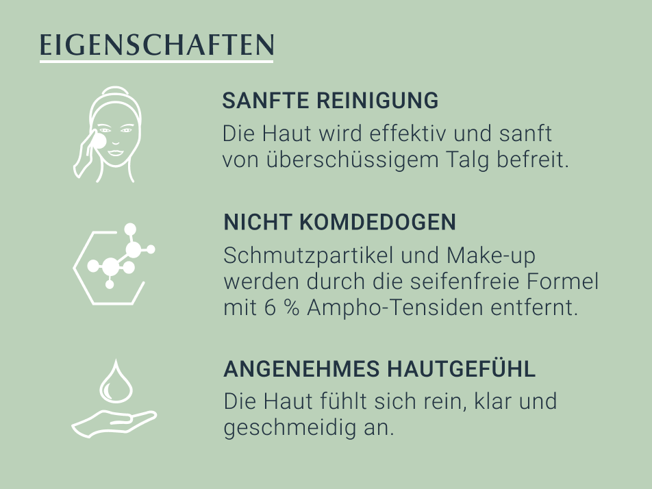 Das Gel ist nicht komedogen und verstopft so die Poren nicht. Zudem ist das Reinigungsgel seifen- und parfümfrei.