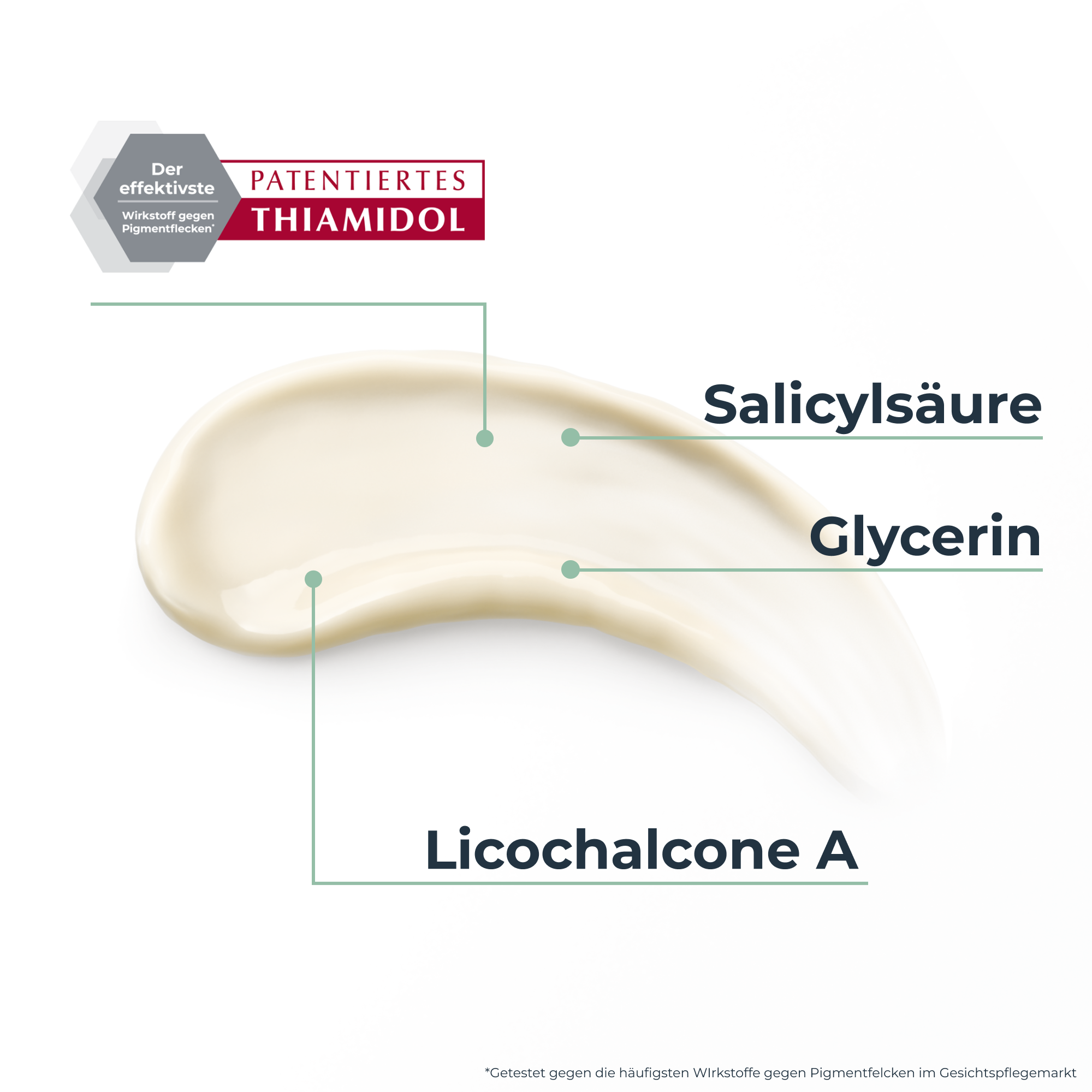 Glycol, Isobutylamido Thiazolyl Resorcinol (Thiamidol®), Glycyrrhiza Inflata Root Extract, Xanthan Gum, Hydroxypropyl Starch Phosphate, Carrageenan, Phenoxyethanol, Trisodium Ethylenediamine Disuccinate, Sodium Hydroxide,
