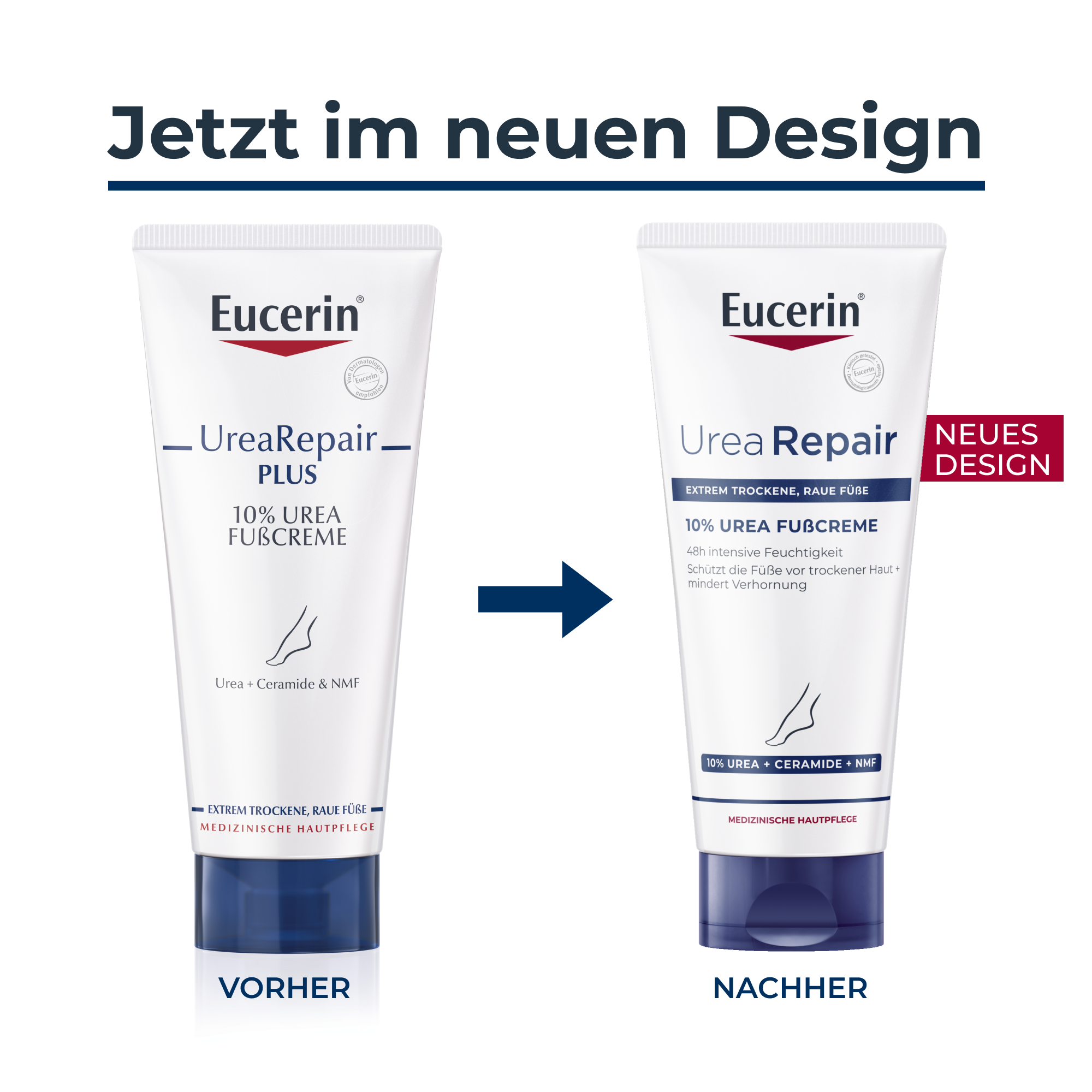 Bei den Zeichen trockener Haut an den Füßen verbessert der einzigartige Repair-PLUS-Komplex der Fußpflege die Feuchtigkeitsbindung der Haut und bringt den Lipid-(Fett-) und Feuchtigkeitshaushalt wieder in ein natürliches Gleichgewicht. Dies wird durch die Kombination der Wirkstoffe Urea, Ceramide sowie natürlichen Feuchthaltefaktoren erreicht. Ebenso versorgt die Hautcreme raue Haut an den Füßen und rissige Fersen intensiv.