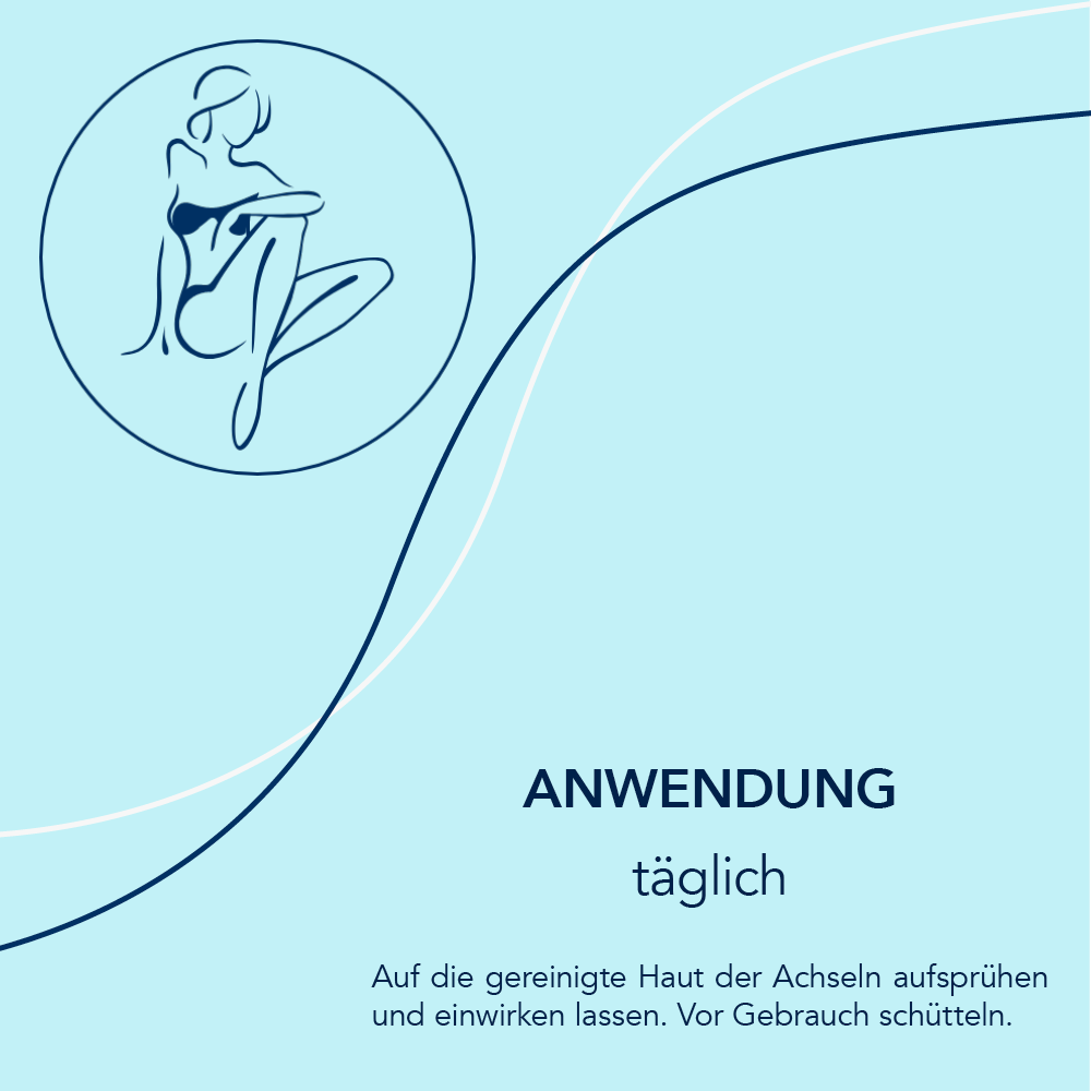Auf die gereinigte Haut der Achseln aufsprühen und einwirken lassen.