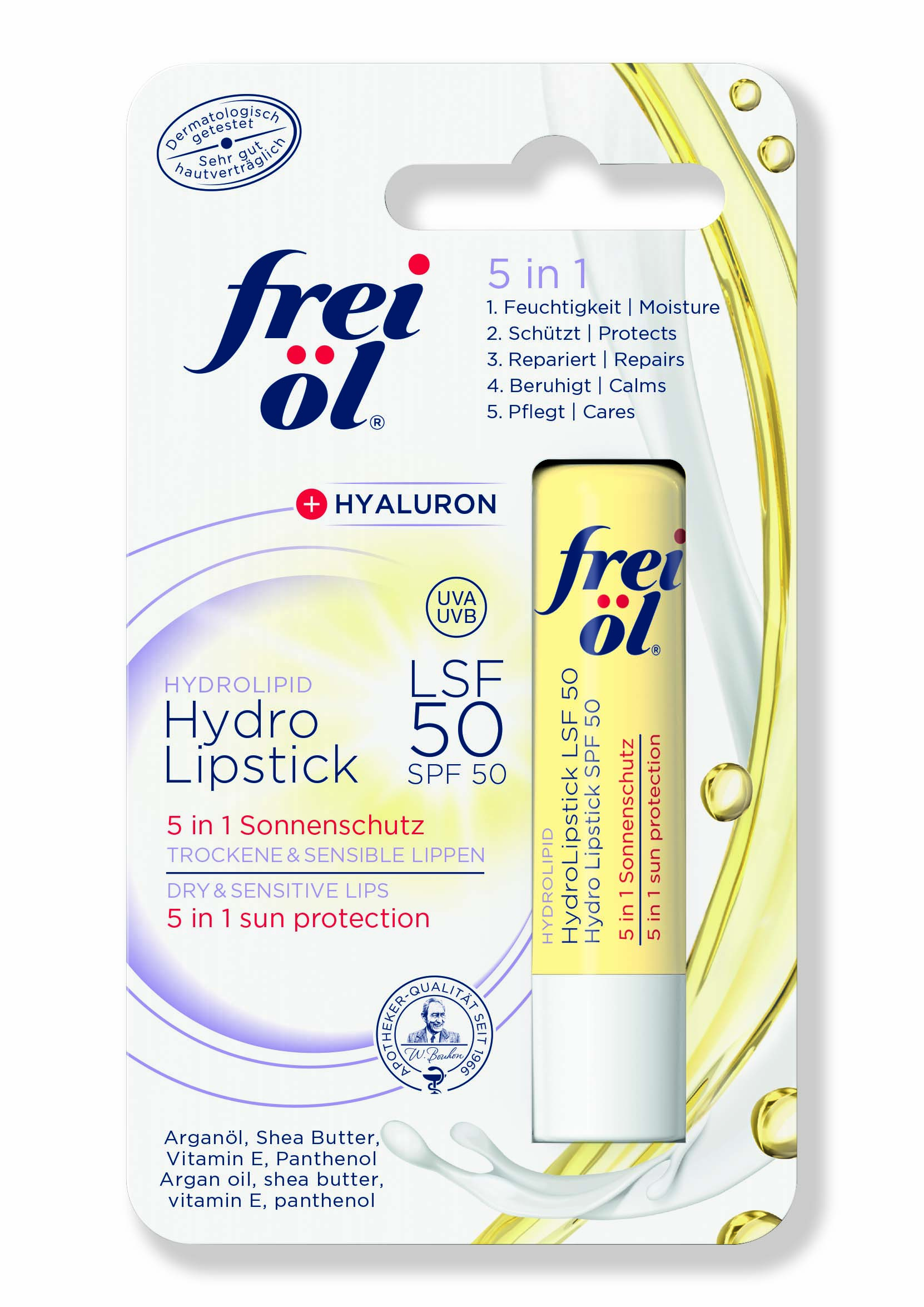 Der frei öl® HYDROLIPID HydroLipstick LSF 50 - die 5 in 1 Hyaluron-Lippenpflege mit Sonnenschutz