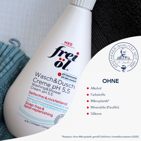 Die seifenfreie frei öl® Wasch&DuschCreme pH 5,5 mit zartem Duft