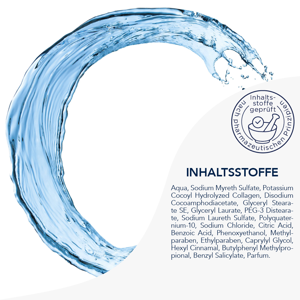 Aqua, Sodium Myreth Sulfate, Potassium Cocoyl Hydrolyzed Collagen, Disodium Cocoamphodiacetate, Glyceryl Stearate SE, Coco-Glucoside, Glyceryl Laurate, Glyceryl Distearate, Glycerin, Phenoxyethanol, Sodium Chloride, Citric Acid, Hydroxyacetophenone, Polyquaternium-10, Parfum, O-Cymen-5-Ol, Hydroxycitronellal, Benzyl Salicylate.