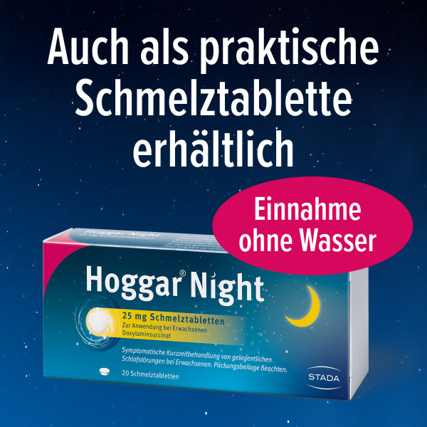 und haben sogar Konzentrationsschwierigkeiten oder Gedächtnisstörungen. Schneller einschlafen, besser durchschlafen: Deutschlands meistverkauftes Schlafmittel1 Hoggar® Night ist eine gut verträgliche und schnelle Hilfe bei akuten Schlafstörungen und wirkt ab der ersten Anwendung - für erholsame Nächte und ausgeschlafene Tage. 1IQVIA Pharmatrend Deutschland, Absatz 12/2023)