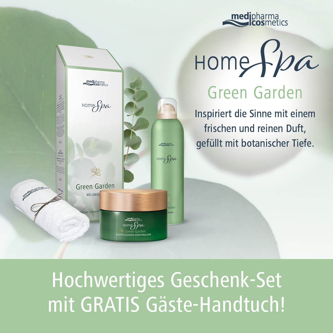 medipharma cosmetics Home Spa Green Garden Geschenk-Set mit gratis Gästehandtuch - Ein verwöhnendes Spa-Erlebnis für die Sinne