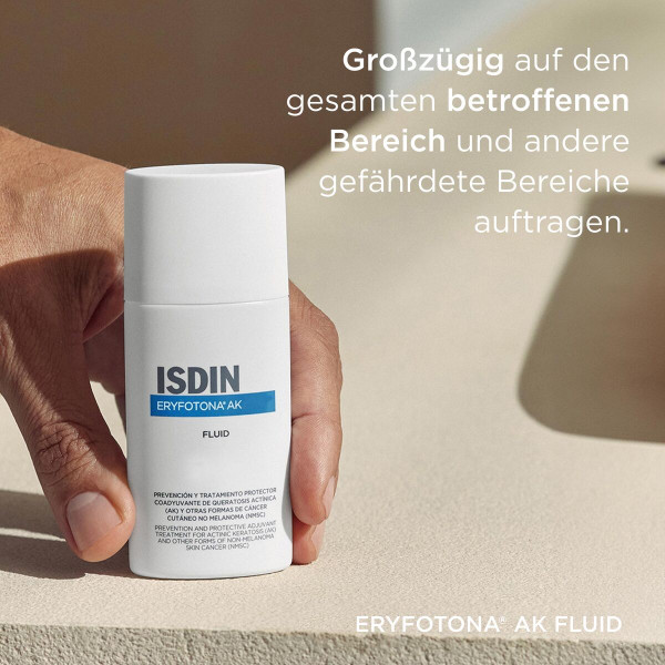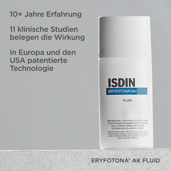 - Mit DNA Repairsomes, einer von ISDIN patentierten Technologie, die das mit aktinischer Keratose und Nicht-Melanom-Hautkrebs verbundene subklinische kutane Karzinomfeld reduziert und verbessert.