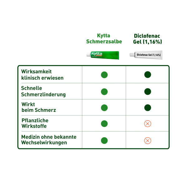 Die Kytta Schmerzsalbe ist eine topische Salbe mit Wirkstoff pflanzlichen Ursprungs zur starken und schnellen Schmerzlinderung¹. Der einzigartige Beinwellwurzel-Extrakt von Kytta bietet Linderung bei Muskel-, Kniegelenk und Rückenschmerzen. Wissenschaftliche Studien bestätigen die starke und schnelle Wirkung von Beinwellwurzel-Extrakt¹⁻4 .