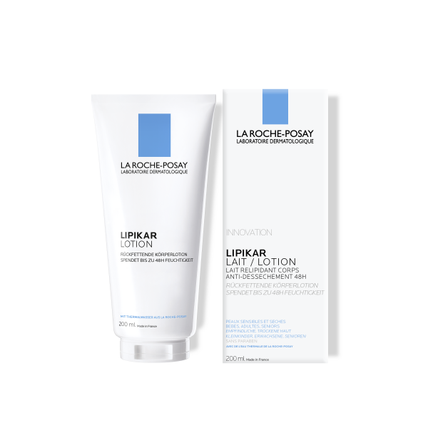Die Pflege für die ganze Familie: LIPIKAR LOTION mit regenerierendem Thermalwasser aus La Roche-Posay. Durch ihre spezielle Formel schützt die LIPIKAR LOTION empfindliche und trockene Haut vor dem Austrocknen und spendet bis zu 48 Stunden Feuchtigkeit. Da die Formulierung nur ein Minimum an ausgewählten Inhaltsstoffen beinhaltet, ist sie auch bei sehr empfindlicher Haut gut verträglich. Die cocoonartige Textur der Cold Cream schützt vor dem Austrocknen. Niacinamid mildert Hautirritationen und das Spannungsgefühl der Haut, während Sheabutter rückfettend wirkt und die Haut geschmeidig hält. Die dezent duftende und schnell einziehende Textur der LIPIKAR LOTION fettet und klebt nicht.