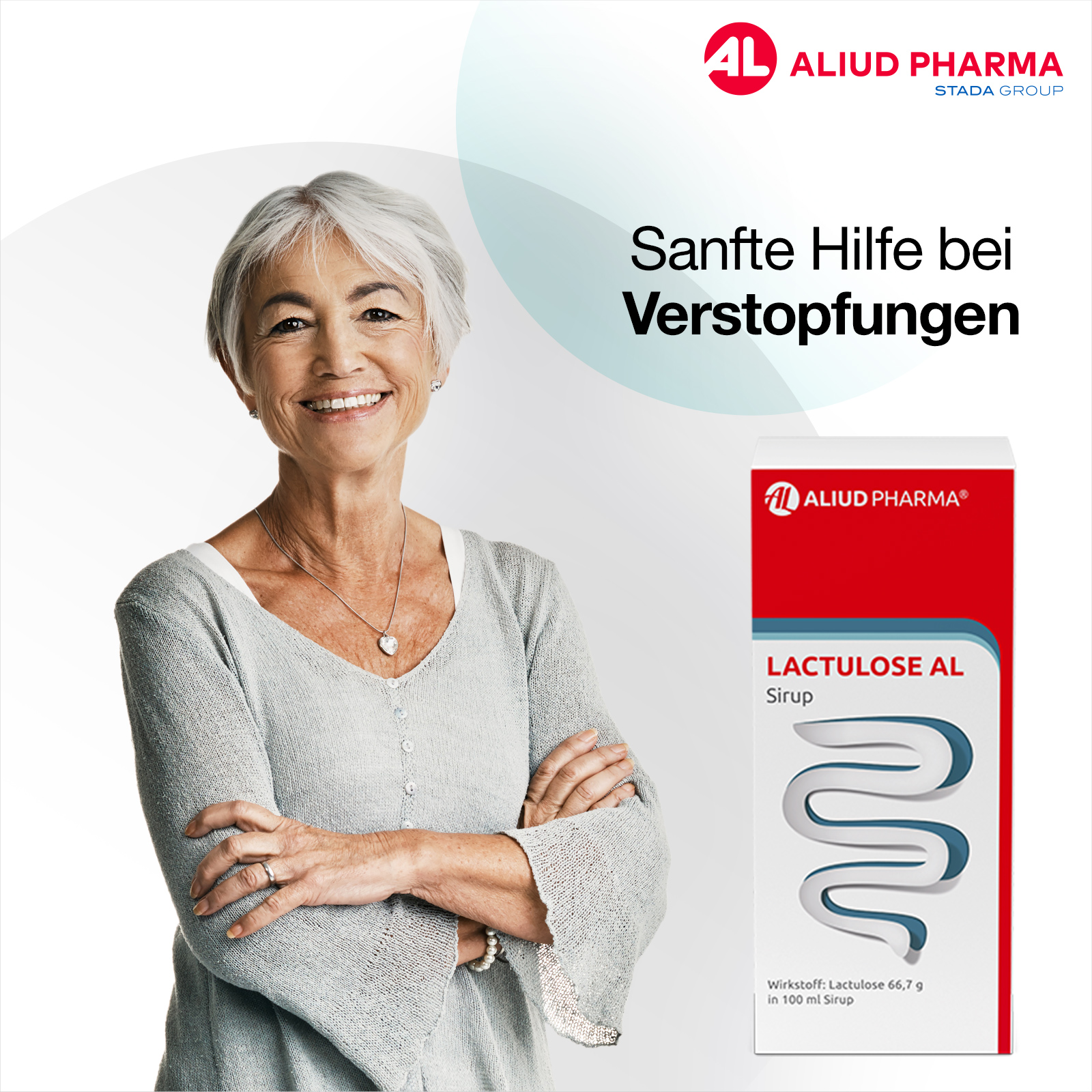 Um den Darm wieder in Schwung zu bringen und den Stuhlgang zu erleichtern, eignen sich Ab-führmittel wie zum Beispiel LACTULOSE AL Sirup.