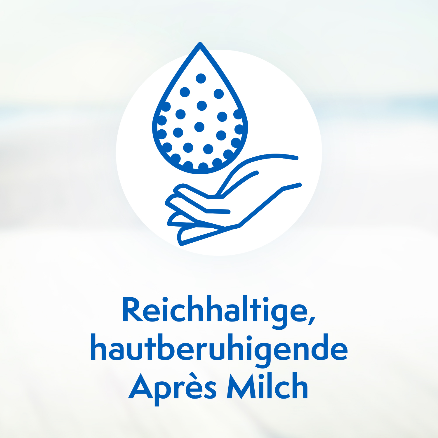 Die sehr reichhaltige After Sun Kinder Pflege Milch mit hautberuhigendem pflanzlichem Defensil-Komplex pflegt intensiv nach dem Aufenthalt in der Sonne, ist leicht aufzutragen und angenehm kühlend. Die Flasche kann auf dem Kopf stehen – für eine vollständige Restentleerbarkeit.
