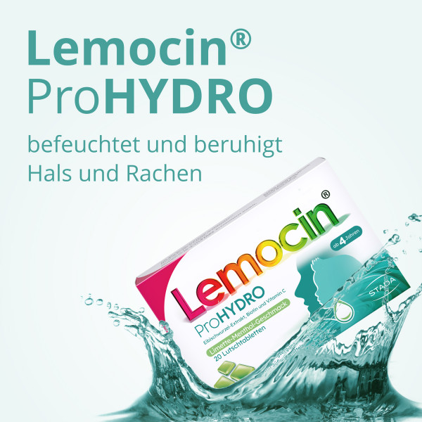 LEMOCIN® PROHYDRO – FÜR DIE WOHLTUENDE FEUCHTIGKEIT FÜR ZWISCHENDURCH: BERUHIGT UND BEFEUCHTET HALS UND RACHEN Halsschleimhäute werden im Alltag oft stark strapaziert: Lange und lautes Sprechen, Lufttrockenheit und wenig Flüssigkeitszufuhr fordern ihnen einiges ab. Hinzu kommen bei vielen Menschen bestimmte Medikamente oder Erkrankungen, welche die Schleimhäute im Hals- und Rachenraum reizen und austrocknen. Hier kann Lemocin® ProHYDRO durch Befeuchtung und Beruhigung des Hals- und Rachenbereichs helfen.