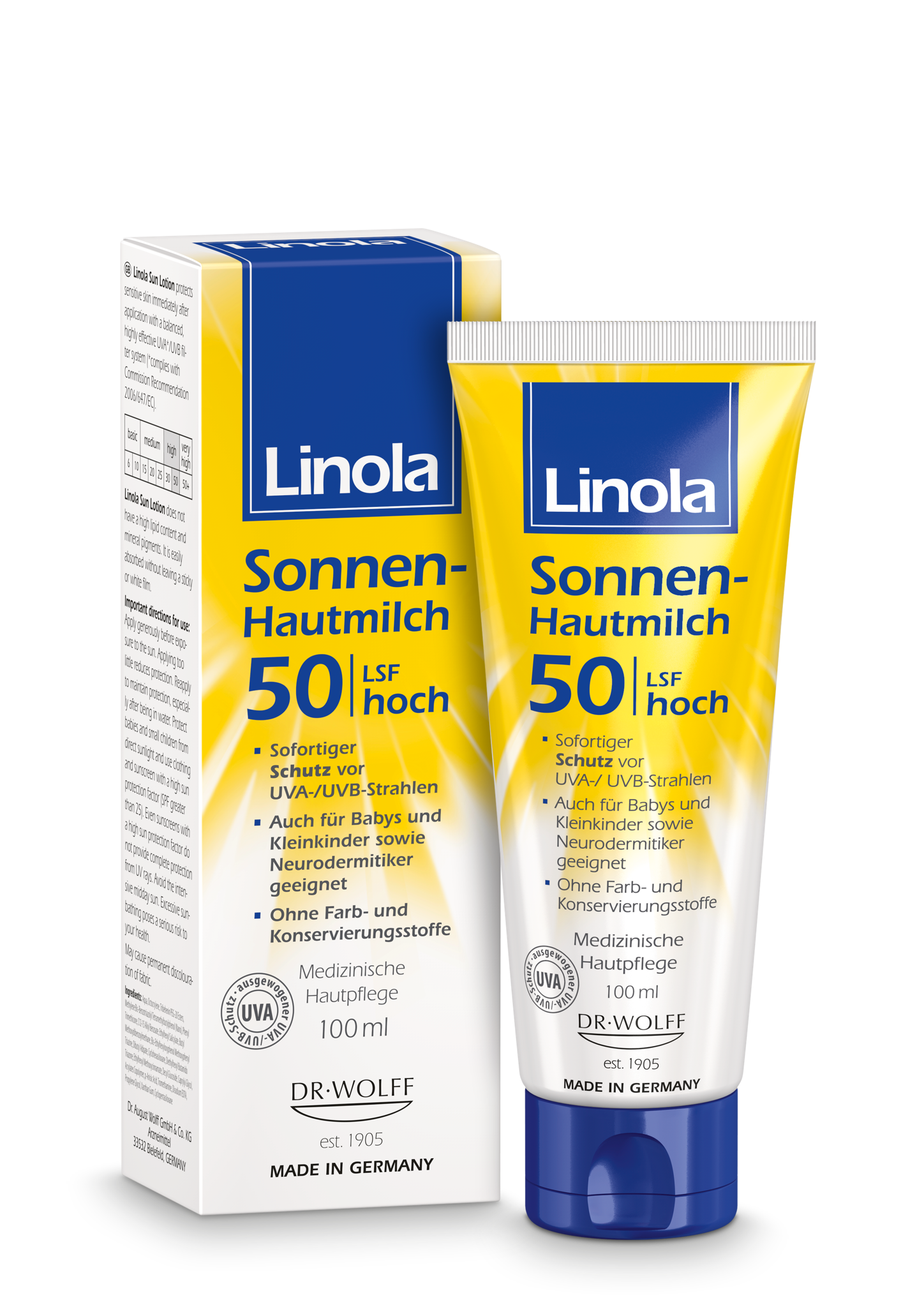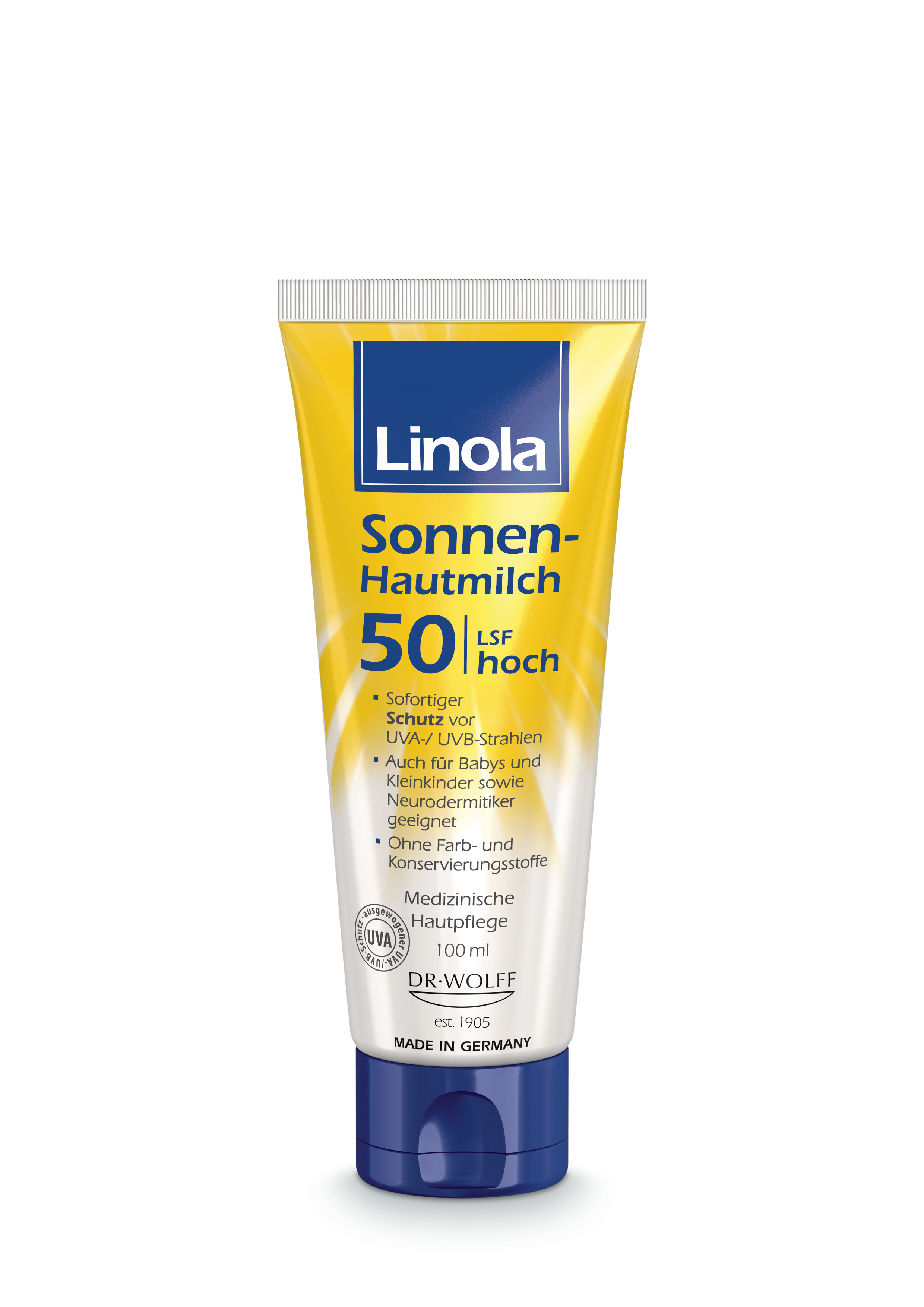 - Auch wasserfeste Präparate wie Linola Sonnen-Hautmilch müssen nach einem längeren Aufenthalt im Wasser sowie nach jedem Abtrocknen mit einem Handtuch erneut aufgetragen werden. • Babys und Kleinkinder bis zum Alter von etwa 3 Jahren sollten vor jeder direkten und längeren Sonnenstrahlung geschützt werden, da ihre Haut viel empfindlicher reagiert. Am besten geeignet hierfür ist das Tragen einer Kopfbedeckung sowie von Kleidung mit speziellem UV-Schutz. Gleichzeitig sollten freie Hautstellen immer durch Sonnenschutzmittel (mindestens LSF 25) geschützt werden.
