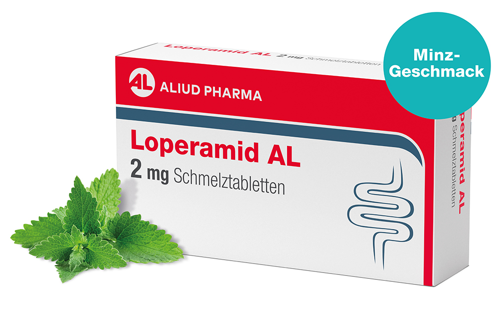 Dank der praktischen Darreichungsform als Schmelztablette kann das Arzneimittel ganz einfach ohne Wasser eingenommen werden – ideal für unterwegs und für Personen, denen das Schlucken von Tabletten schwer fällt. Loperamid AL 2 mg Schmelztabletten zergehen bequem auf der Zunge und und schmecken nach Minze. Das Arzneimittel ist zur kurzzeitigen Anwendung bei Erwachsenen und Jugendlichen ab 12 Jahren geeignet.