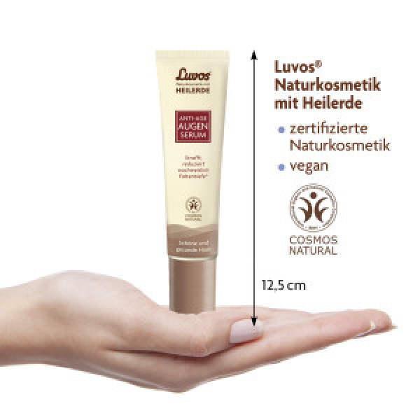 Zertifizierte Naturkosmetik hergestellt in Deutschland: das Familienunternehmen Luvos mit 100-jähriger Tradition stellt dieses Produkt nach höchstem Standard von COSMOS NATURAL / BDIH her. Es ist selbstverständlich vegan, tierversuchsfrei. Die Hautverträglichkeit ist dermatologisch bestätigt. Das Anti Age Augenserum ist vollkommen frei von problematischen Zusatzstoffen wie Mikroplastik, Mineralöl, Parabenen, Silikonen, Paraffinen, PEGs, künstlichen Farb-, Duft- und Konservierungsstoffen.