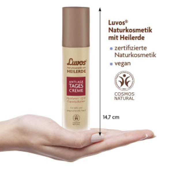 Zertifizierte Naturkosmetik, hergestellt in Deutschland: das Familienunternehmen Luvos mit 100-jähriger Tradition stellt dieses Produkt nach höchstem Standard von COSMOS NATURAL / BDIH her. Es ist selbstverständlich vegan, tierversuchsfrei, die Hautverträglichkeit ist dermatologisch bestätigt. Die Anti-Age Tagespflege ist vollkommen frei von problematischen Zusatzstoffen wie Mikroplastik, Mineralöl, Parabenen, Silikonen, Paraffinen, PEGs, künstlichen Farb-, Duft- und Konservierungsstoffen.
