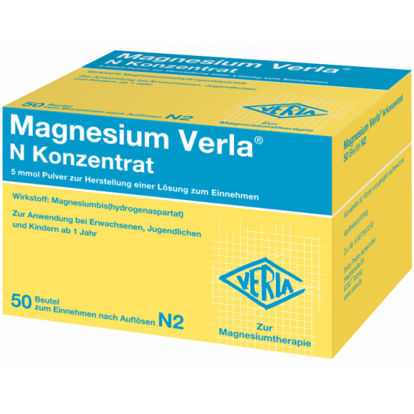 Magnesium Verla® N Konzentrat bewährt sich seit vielen Jahren als Arzneimittel mit höchsten Qualitätsstandards in der Therapie von Magnesiummangelzuständen. Das hochwertige Pulver schmeckt fruchtig nach Mandarine und kann einfach mit Wasser angerührt werden. So wird auch die tägliche Flüssigkeitsaufnahme unterstützt. Das aufgelöste Pulver ist außerdem nicht brausend, eine gute Alternative für alle, die Brausetabletten als unangenehm empfinden. Durch die moderate Dosierung von Magnesium Verla® N Konzentrat ist es individuell gut dosierbar und kann ganz nach Bedarf über den Tag verteilt getrunken werden. Dies erhöht die Bioverfügbarkeit von Magnesium, da kleine Mengen effektiver aufgenommen werden können als große Einmal-Dosen. Zusätzlich wird in Magnesium Verla® N Konzentrat ausschließlich organisches Magnesium für eine gute Aufnahme und Bioverfügbarkeit im Körper verwendet.